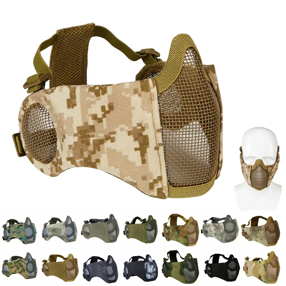 Airsoft media cara malla de acero protectora bajo en carbono Paintball tiro táctico CS Wargame protección facial