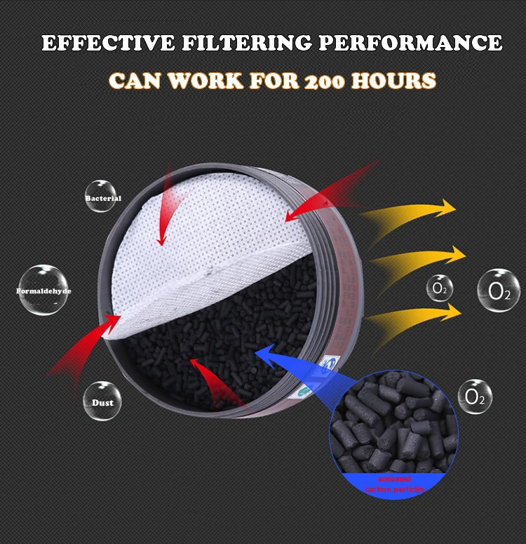 Nota amable:Si huele un olor peculiar después de usarlo durante un período, significa que las partículas de carbono están saturadas, debe reemplazarlas con nuevas partículas de carbono.