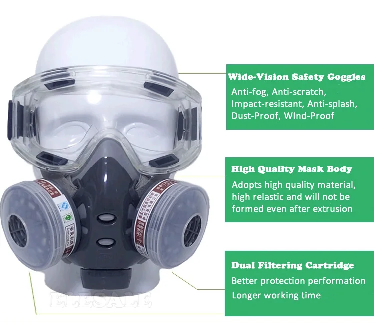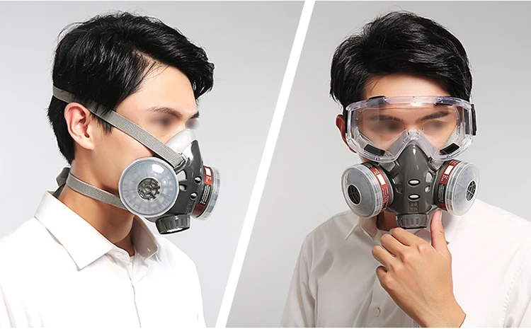 Máscara antipolvo de Gas de media cara profesional para pulverizar pintura, cartucho de filtrado de carbono seguro para el trabajo con gafas de seguridad de visión amplia