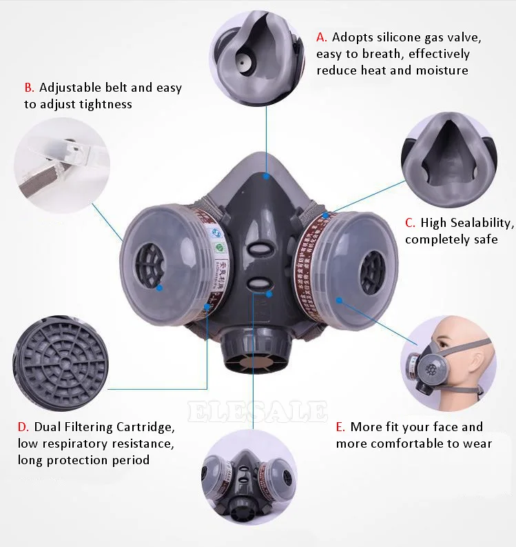 Este respirador químico industrial para pintura automotriz e industrial y vapores orgánicos de baja toxicidad, diseñado para protegerlo de respirar polvo y polvos finos.