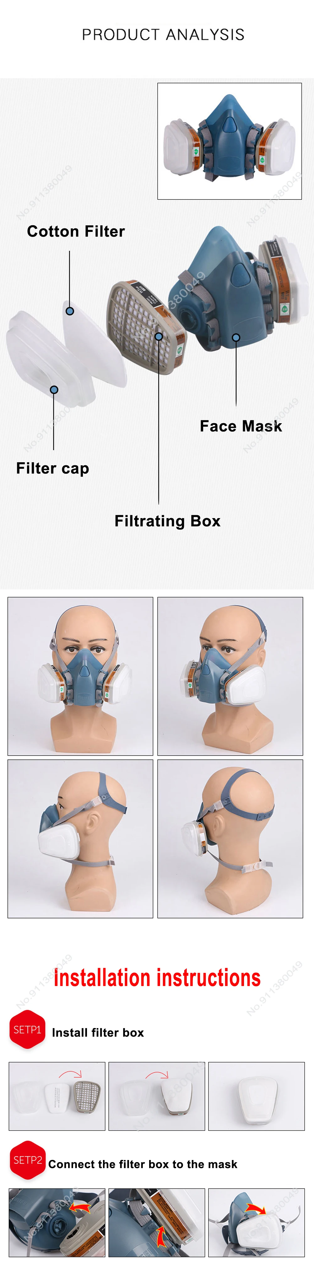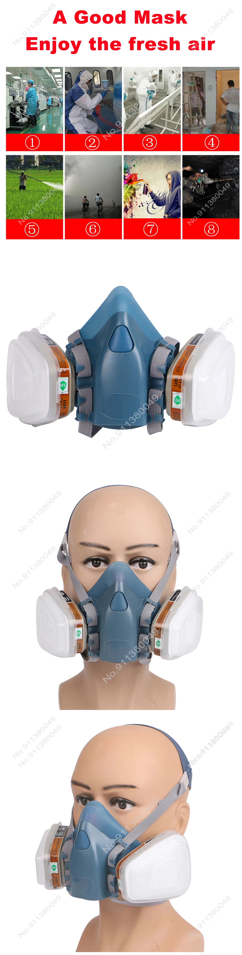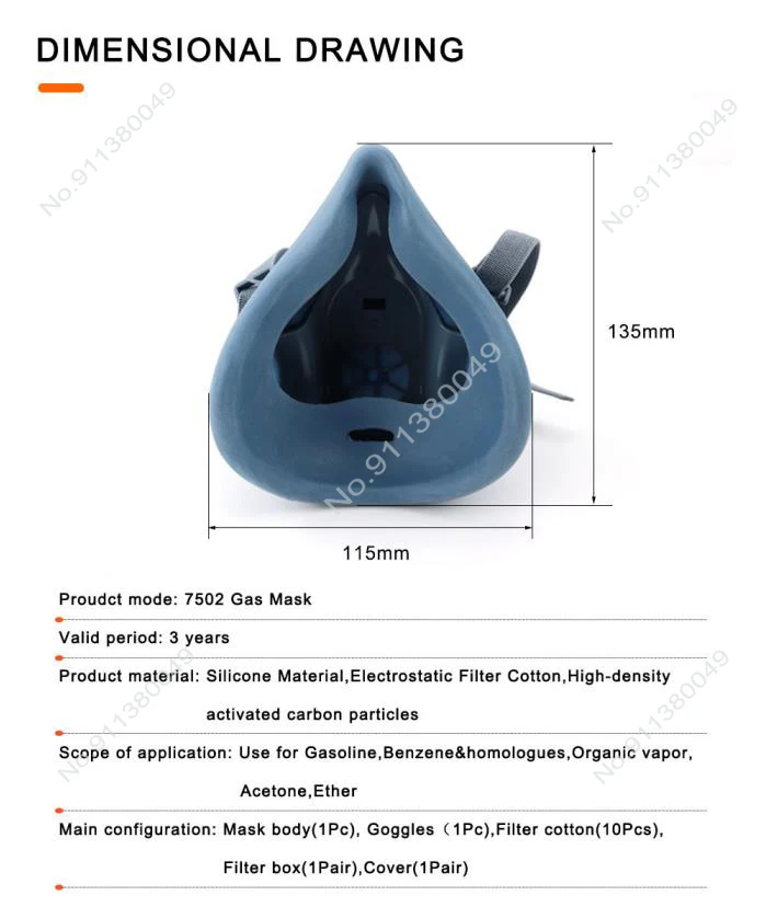 7/9/15/17in1 7502 máscara de gas respirador químico máscara protectora pintura industrial pulverización anti-vapor orgánico 6001/2091 filtro