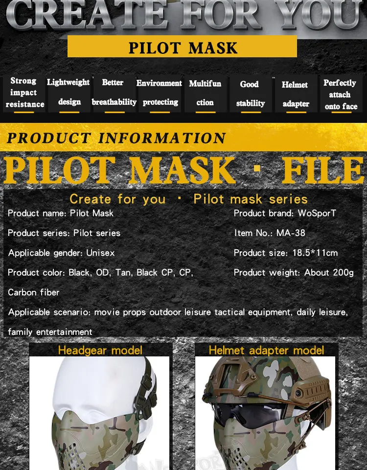 Máscara protectora de media cara para piloto táctico, casco de tiro al aire libre, modo Dual, Cosplay de Airsoft, Wargame