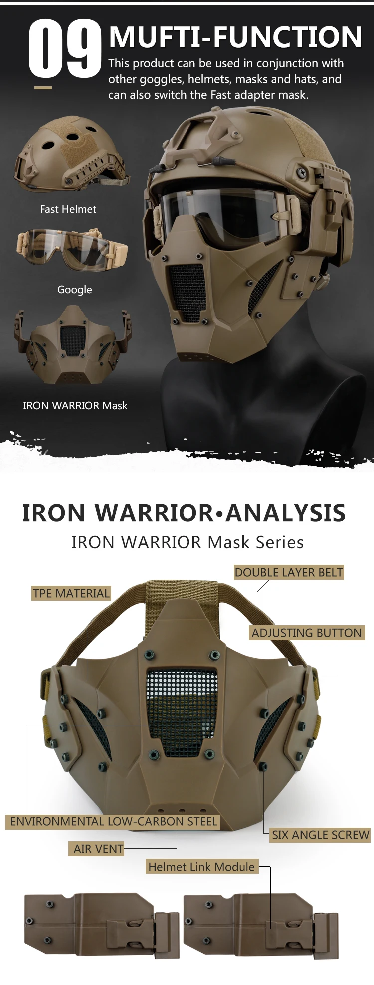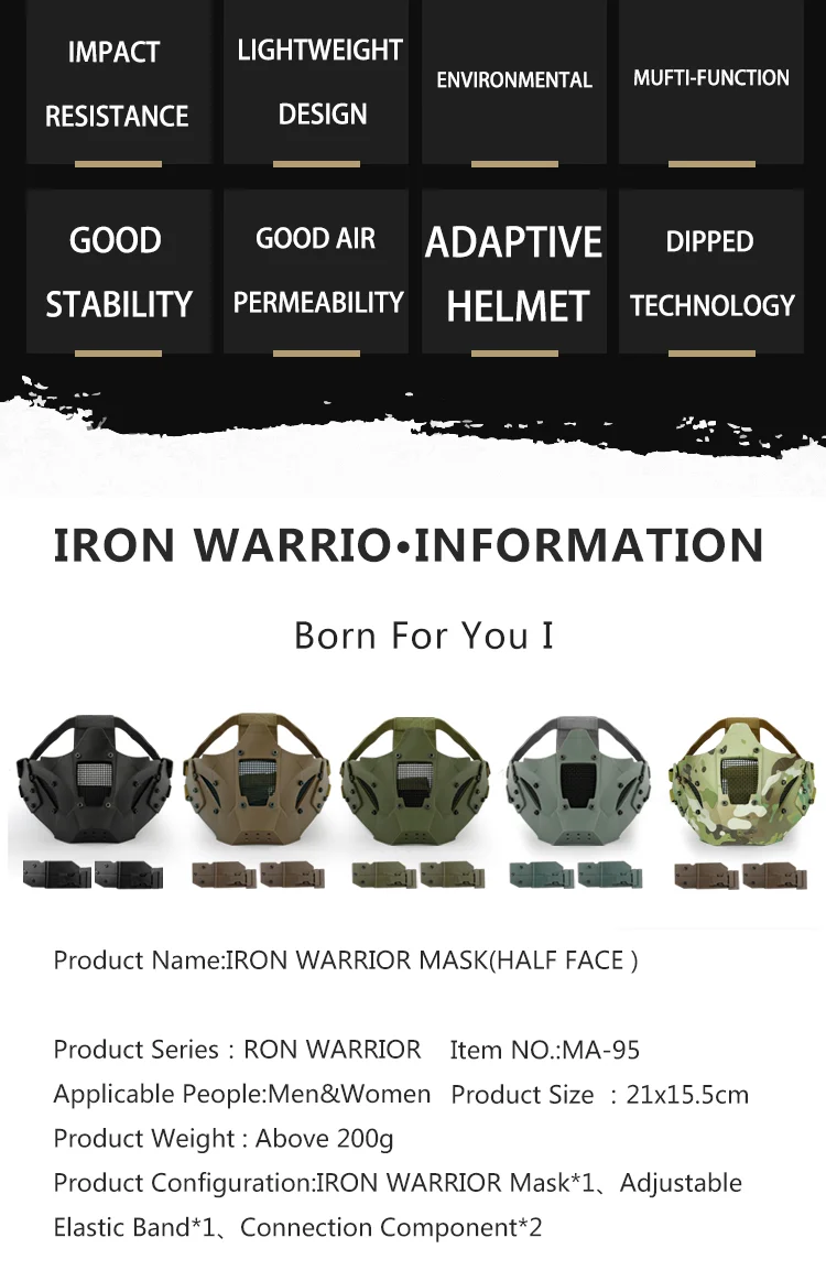Máscara protectora táctica Airsoft Iron Warrior, media cara, máscara transpirable para caza, juego de guerra, accesorios de Paintball