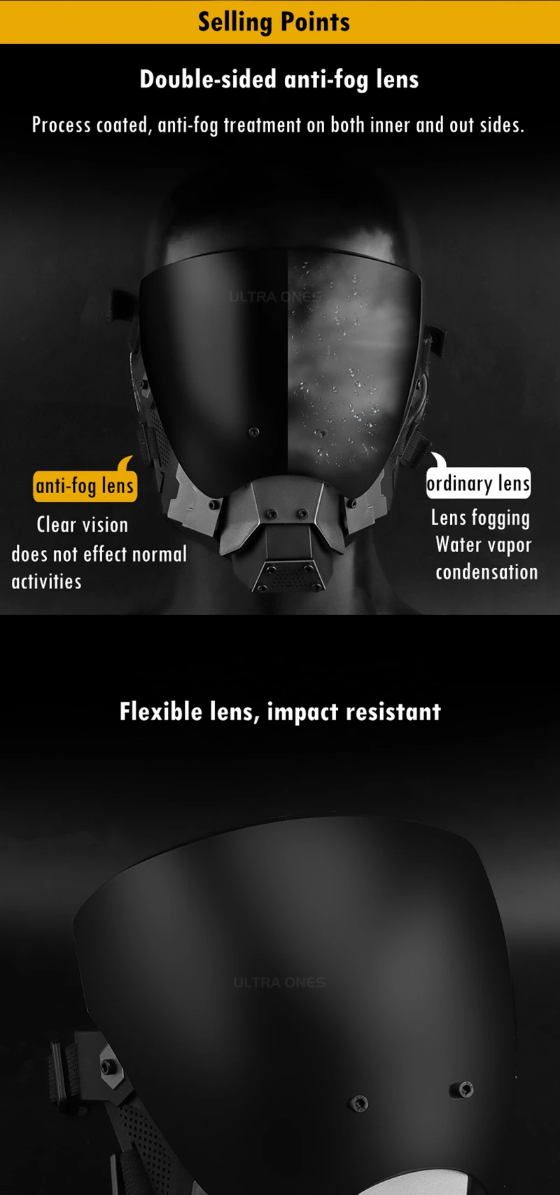 ●Lente antivaho de doble cara: tratamiento antivaho con recubrimiento procurado tanto en el interior como en nuestros lados.