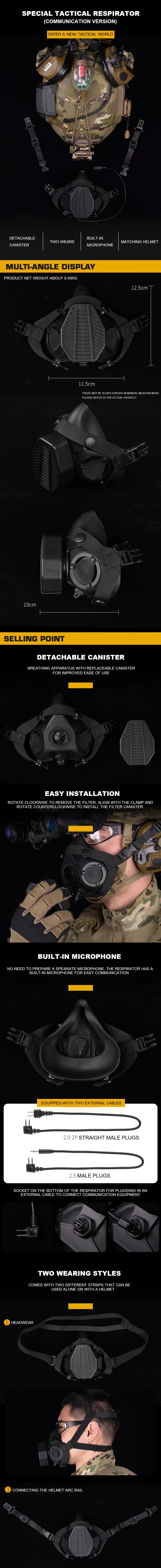 Máscara de respirador especial versión de comunicación máscara de media cara para Paintball Airsoft CS juego Cosplay