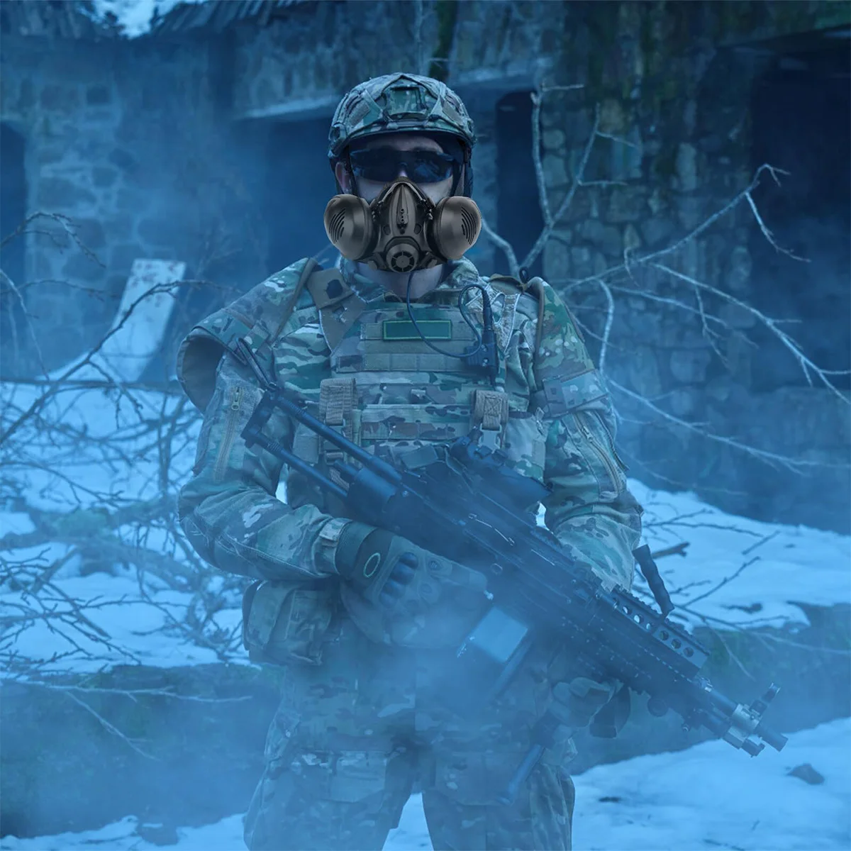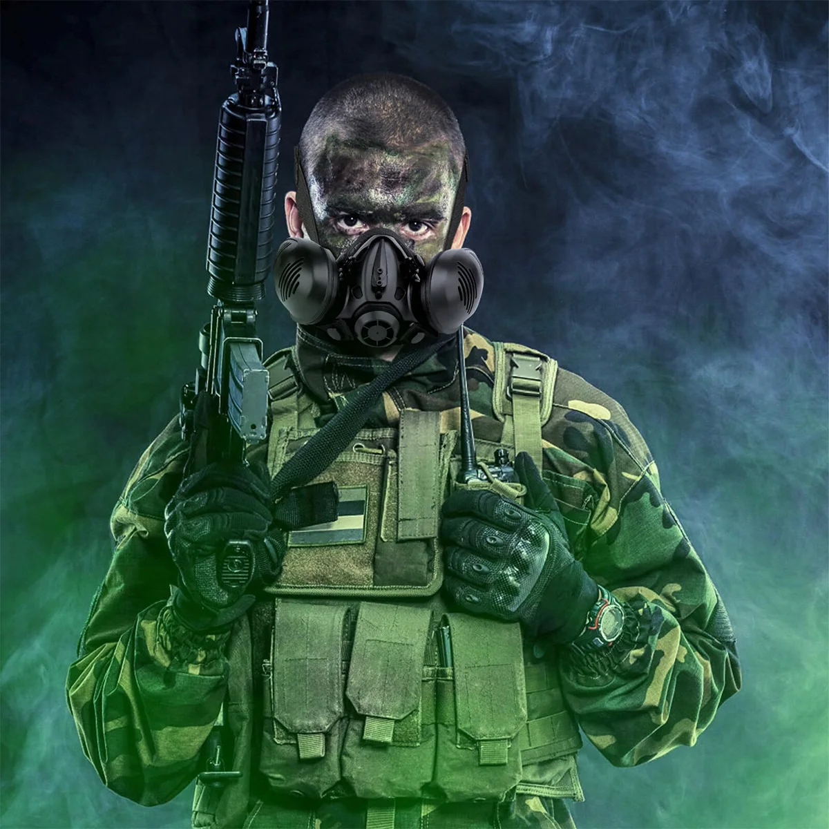 Máscara de respirador táctico: hecha de silicona de alta calidad y ABS, respetuosa con la piel y duradera.