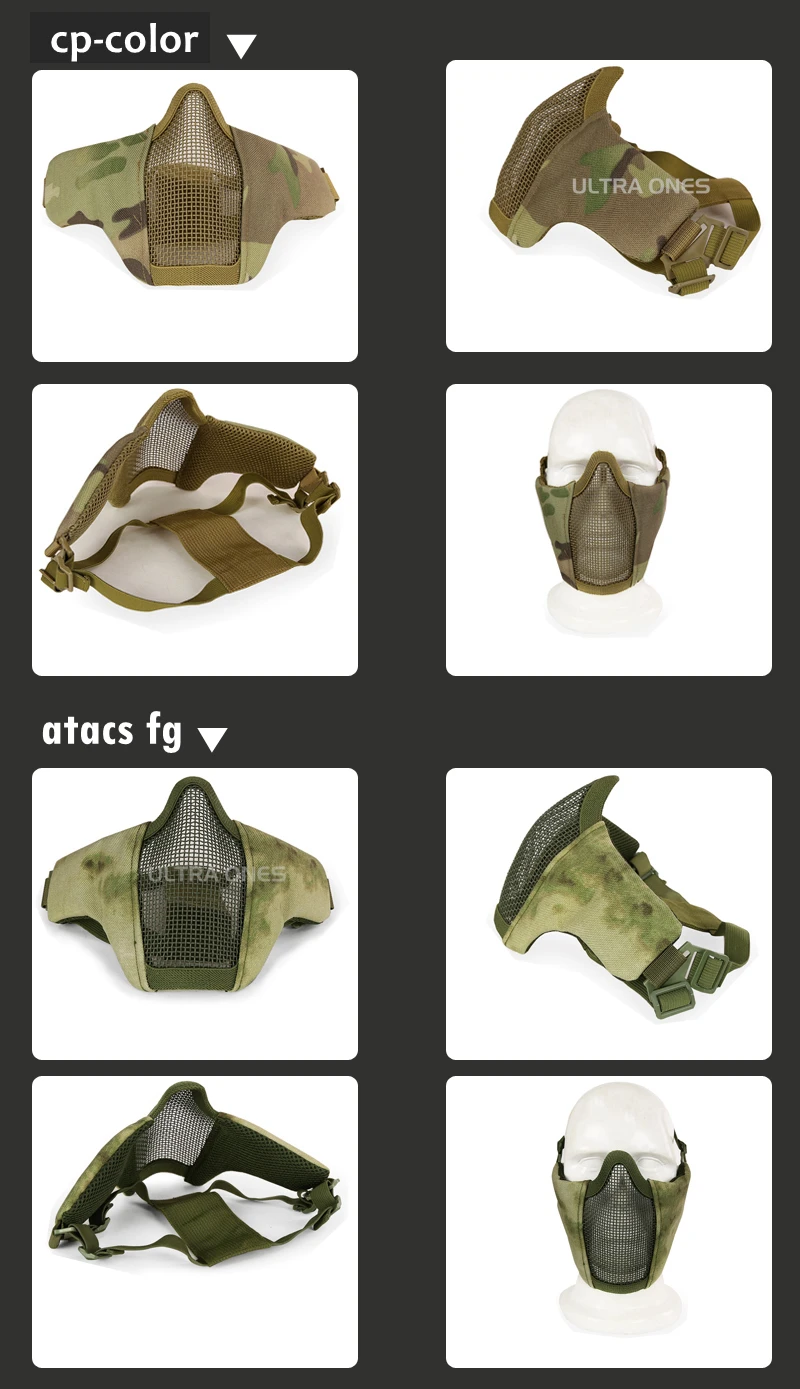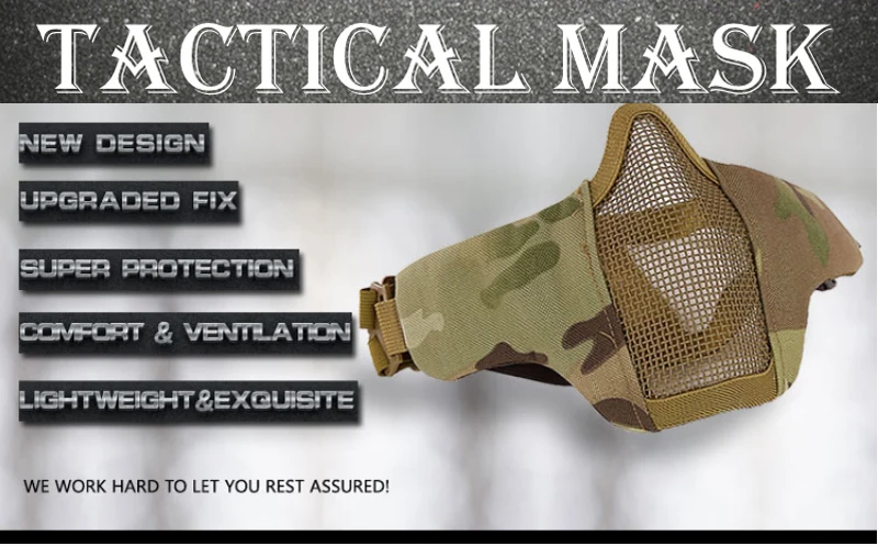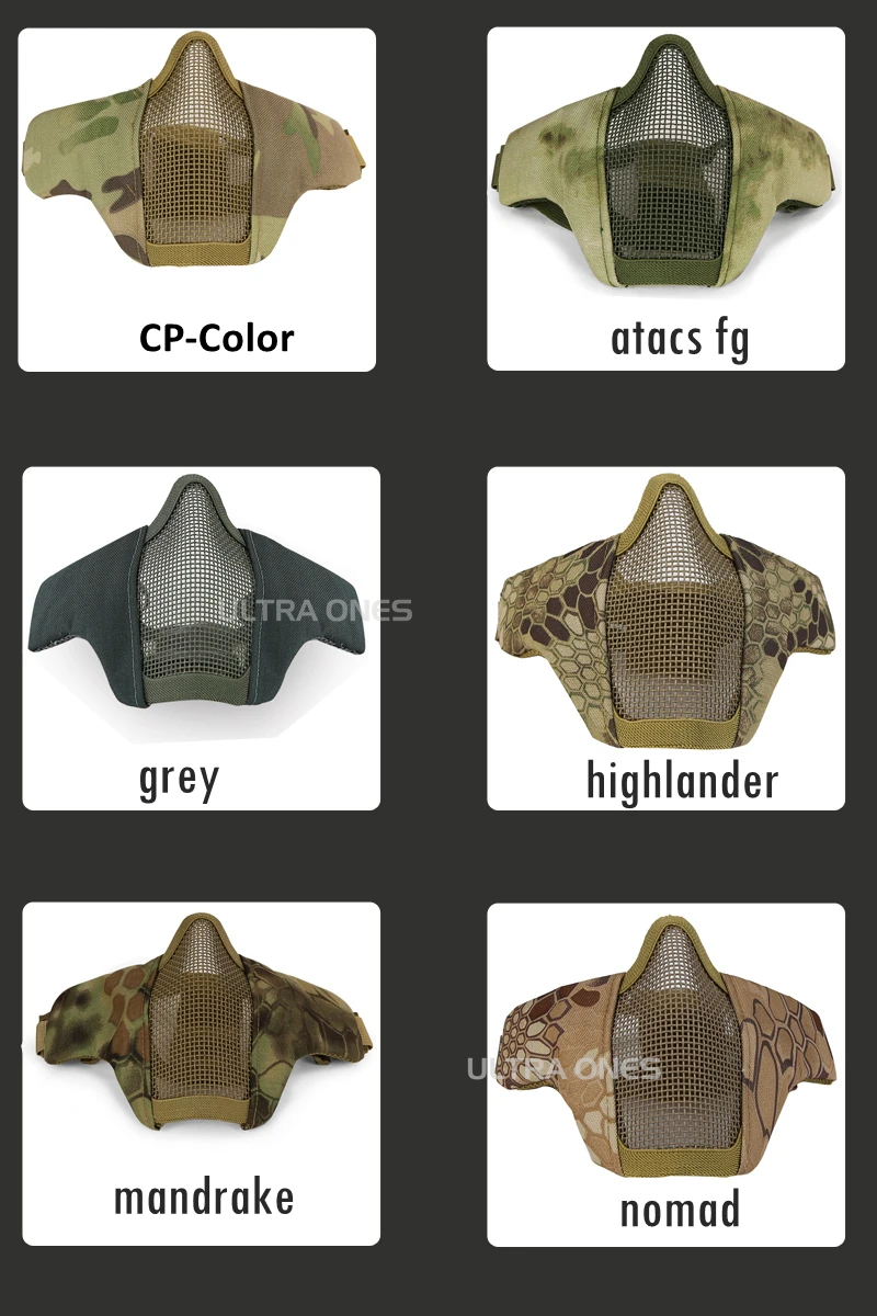 Máscara táctica para exteriores, media cara, red de acero y Metal, máscara de malla para caza, Airsoft, Paintball, media máscara protectora táctica