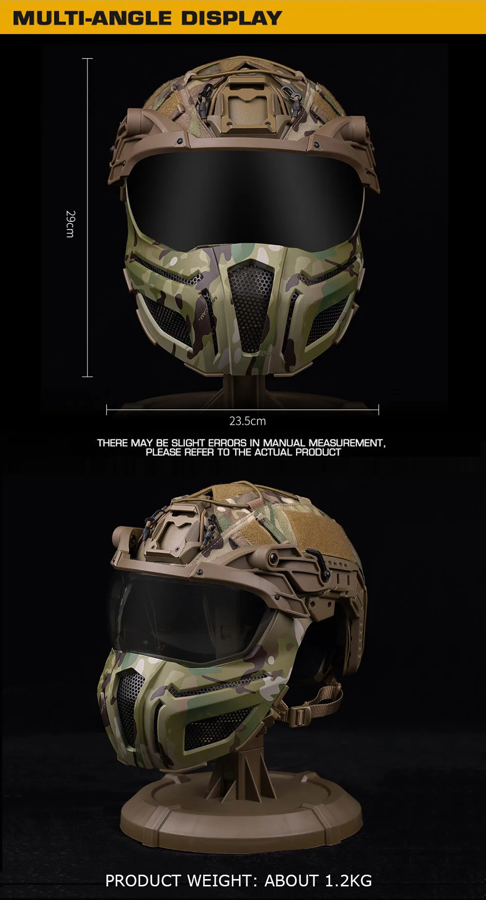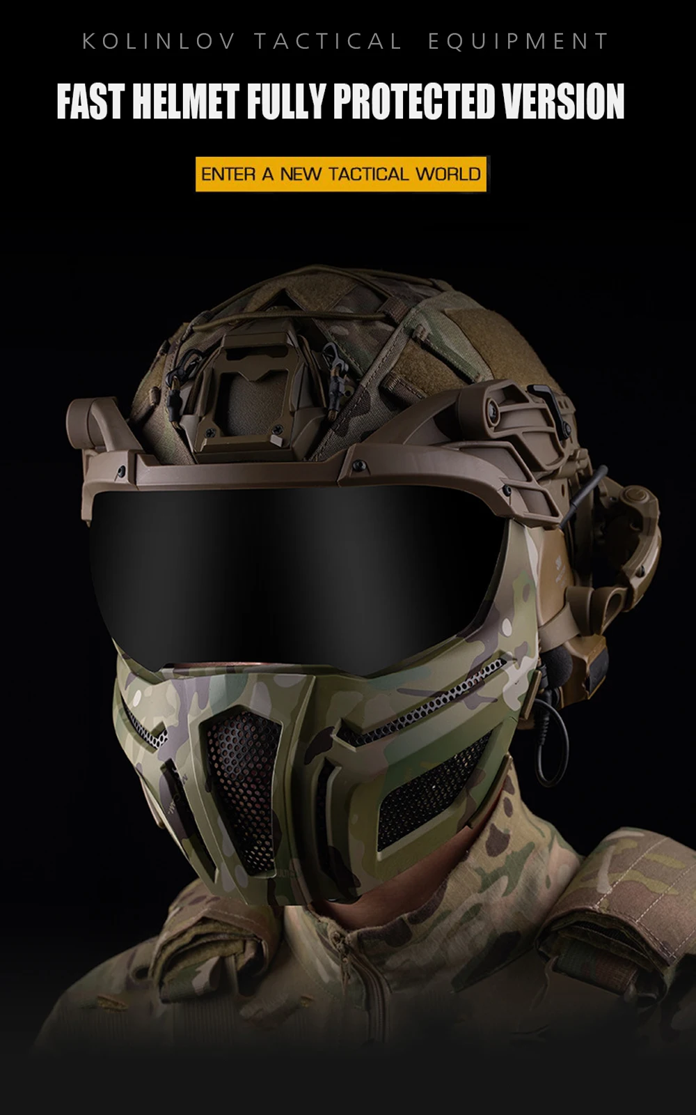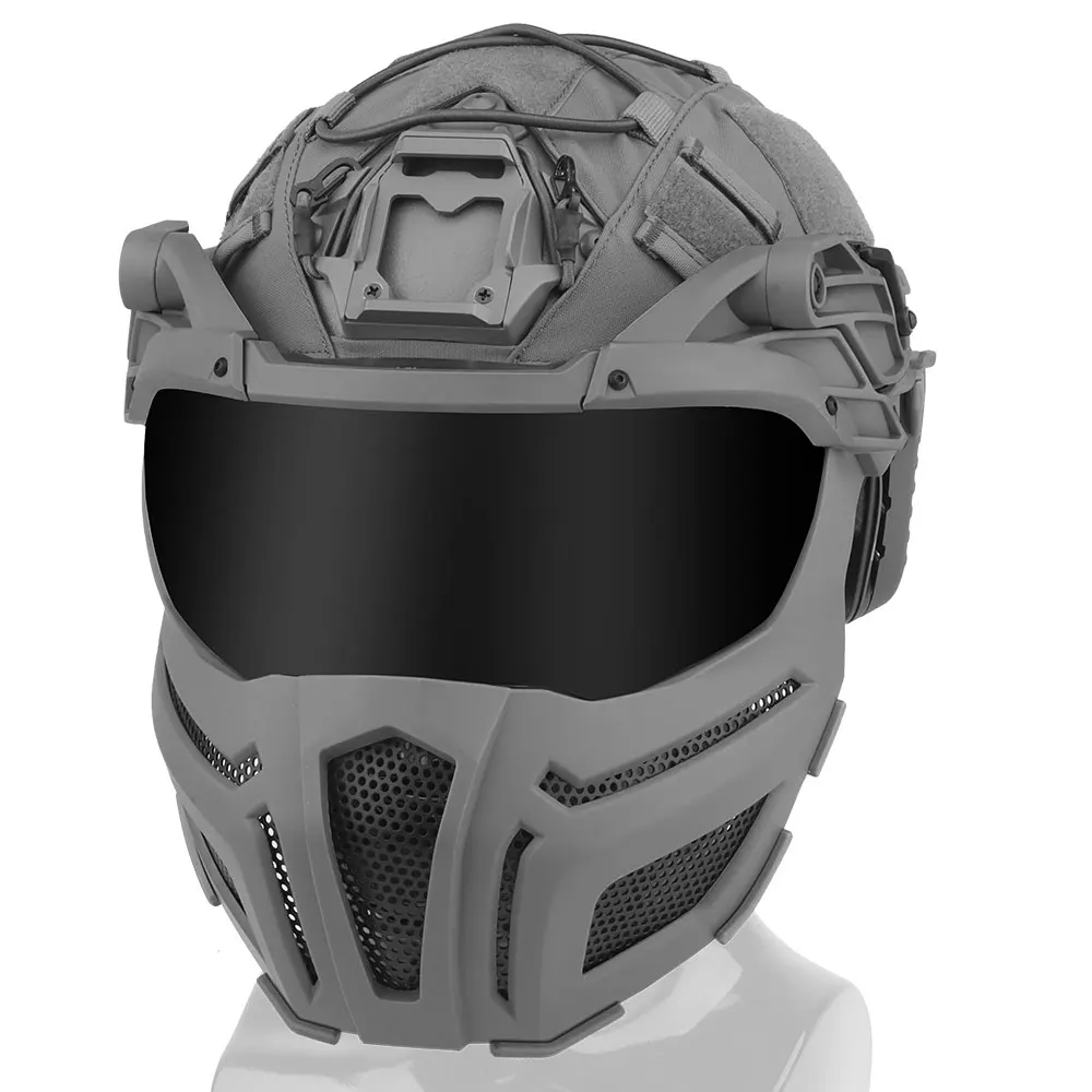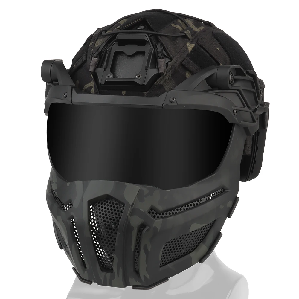 Máscaras tácticas Airsoft Paintball Casco/gafas militares RÁPIDOS completamente protegidos/Medi máscara facial de malla de acero Regalos de Halloween 3 en 1