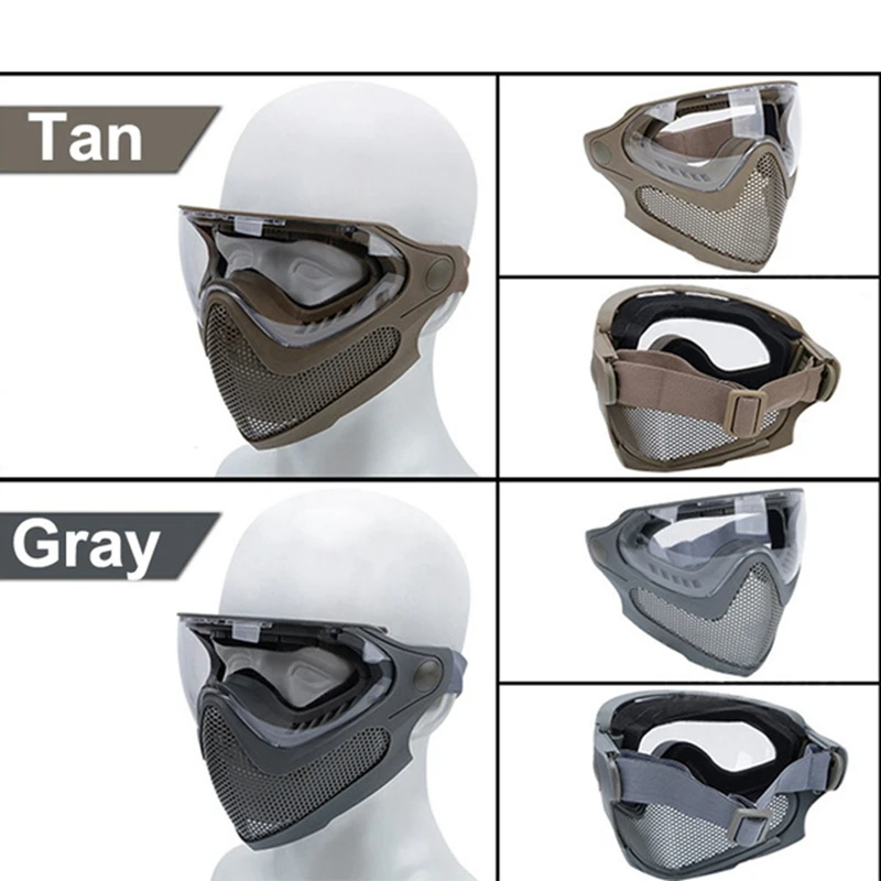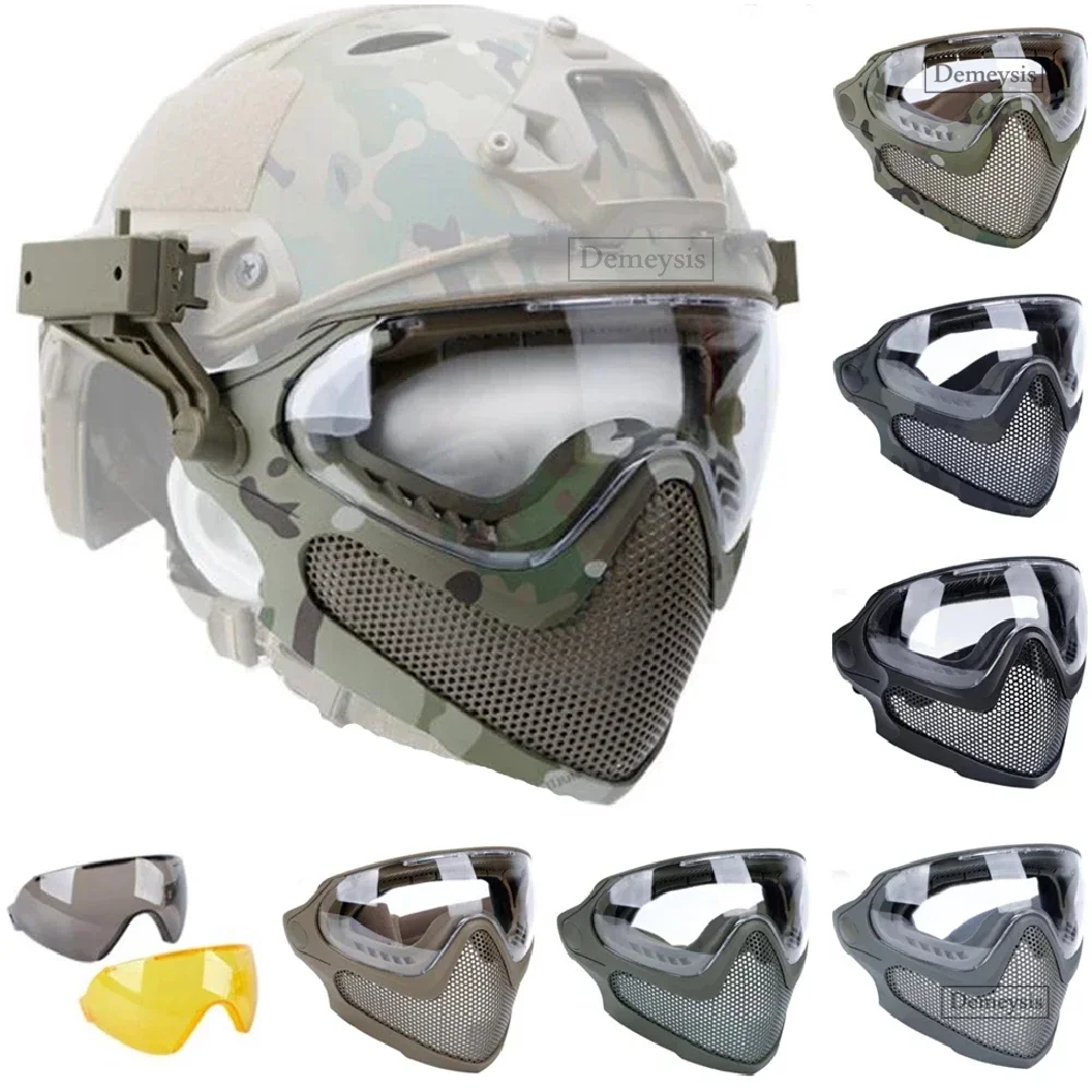 Máscara táctica de cara completa Airsoft con gafas de protección ocular de malla de acero que combinan con casco rápido
