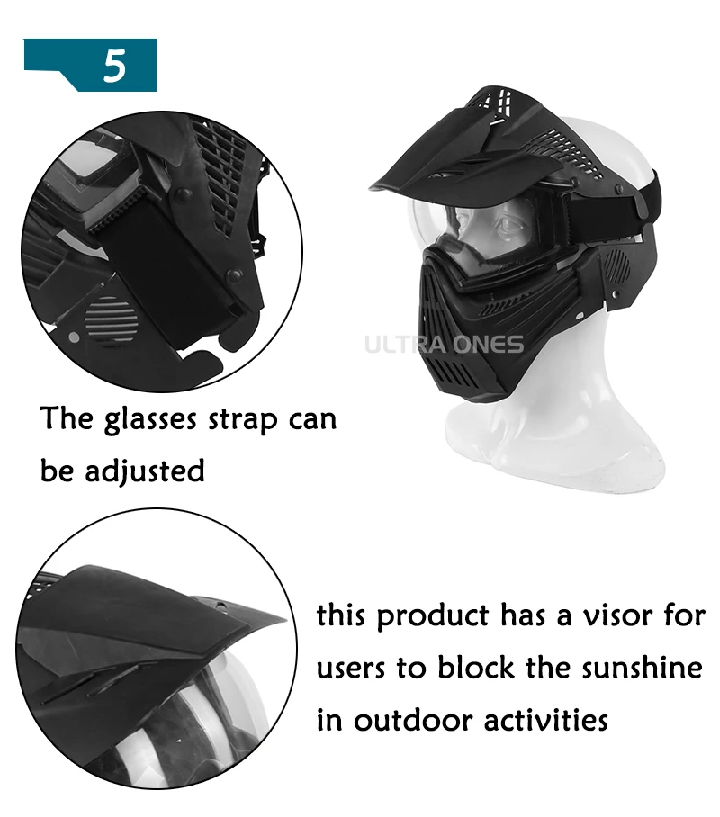 ● Con diseño de parasoles.Protección de cobertura total por la máscara, a prueba de viento y polvo.