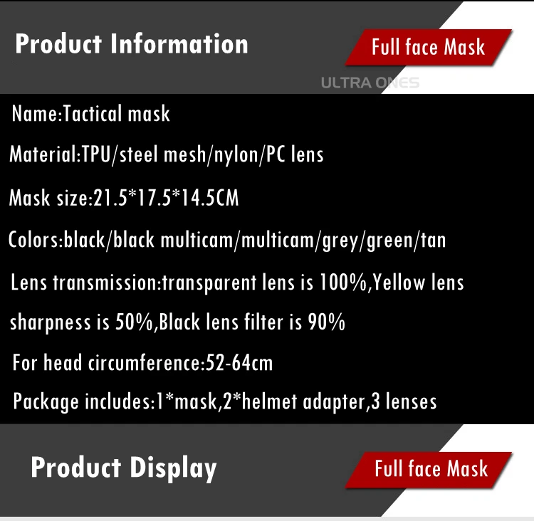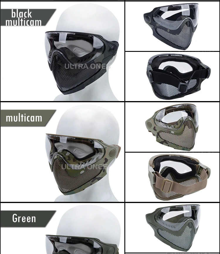 ● Material:Máscara principal:TPU, malla de acero: nylon, gafas: PC Lente