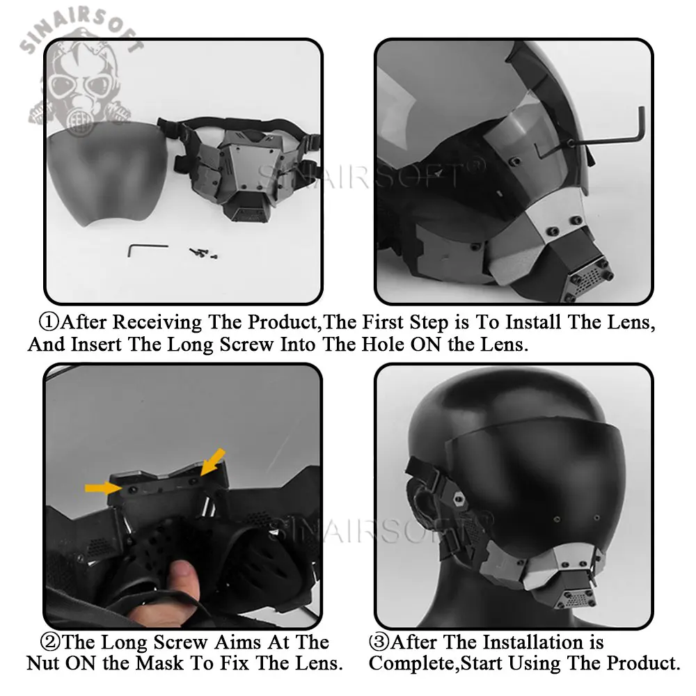 ②El tornillo largo tiene como objetivo la tuerca de la máscara para fijar la lente.