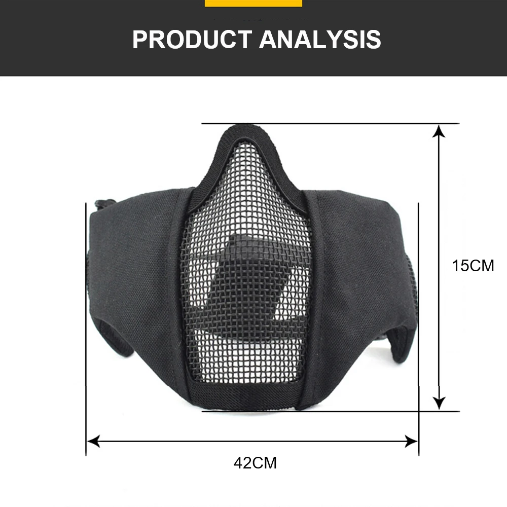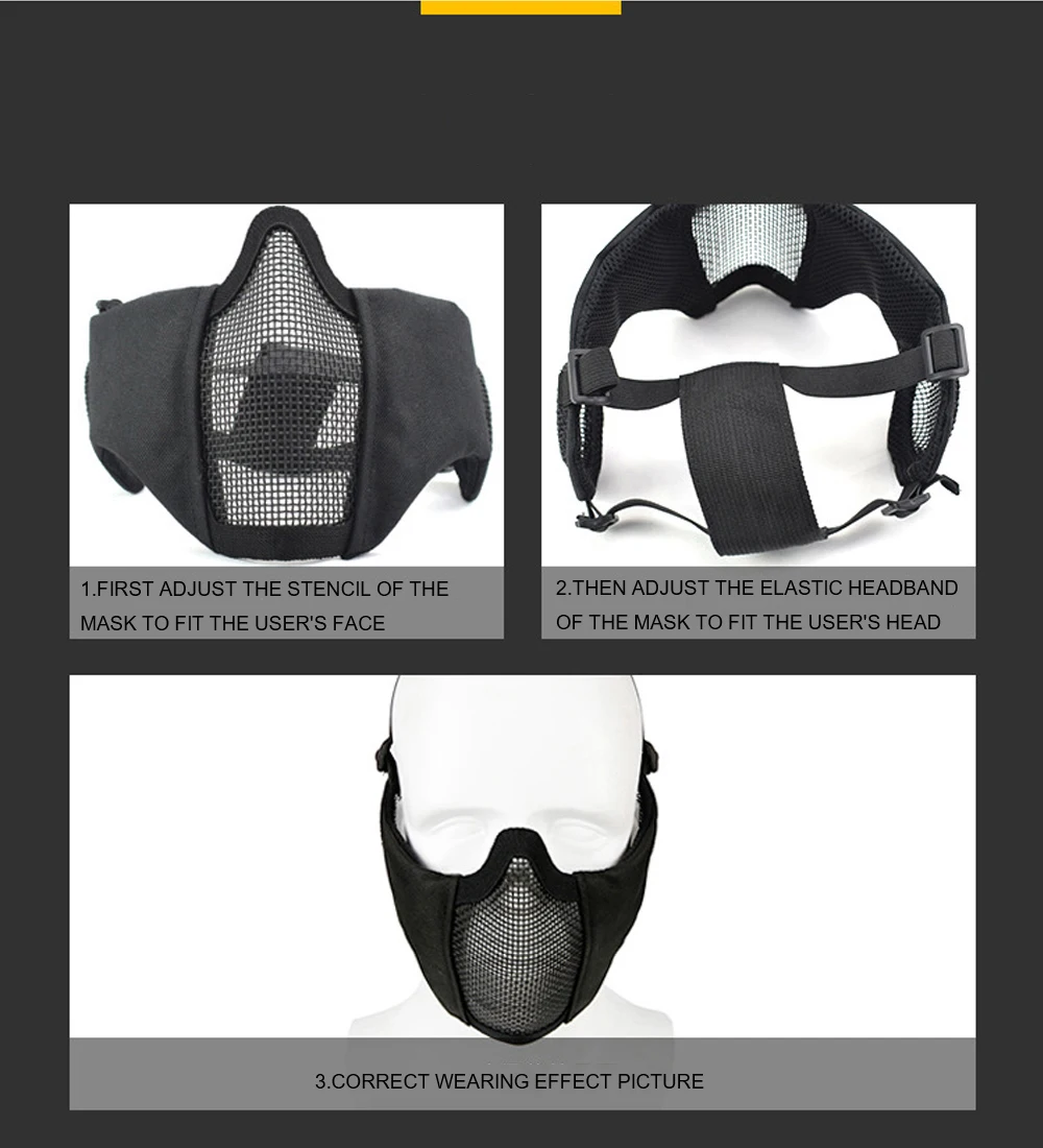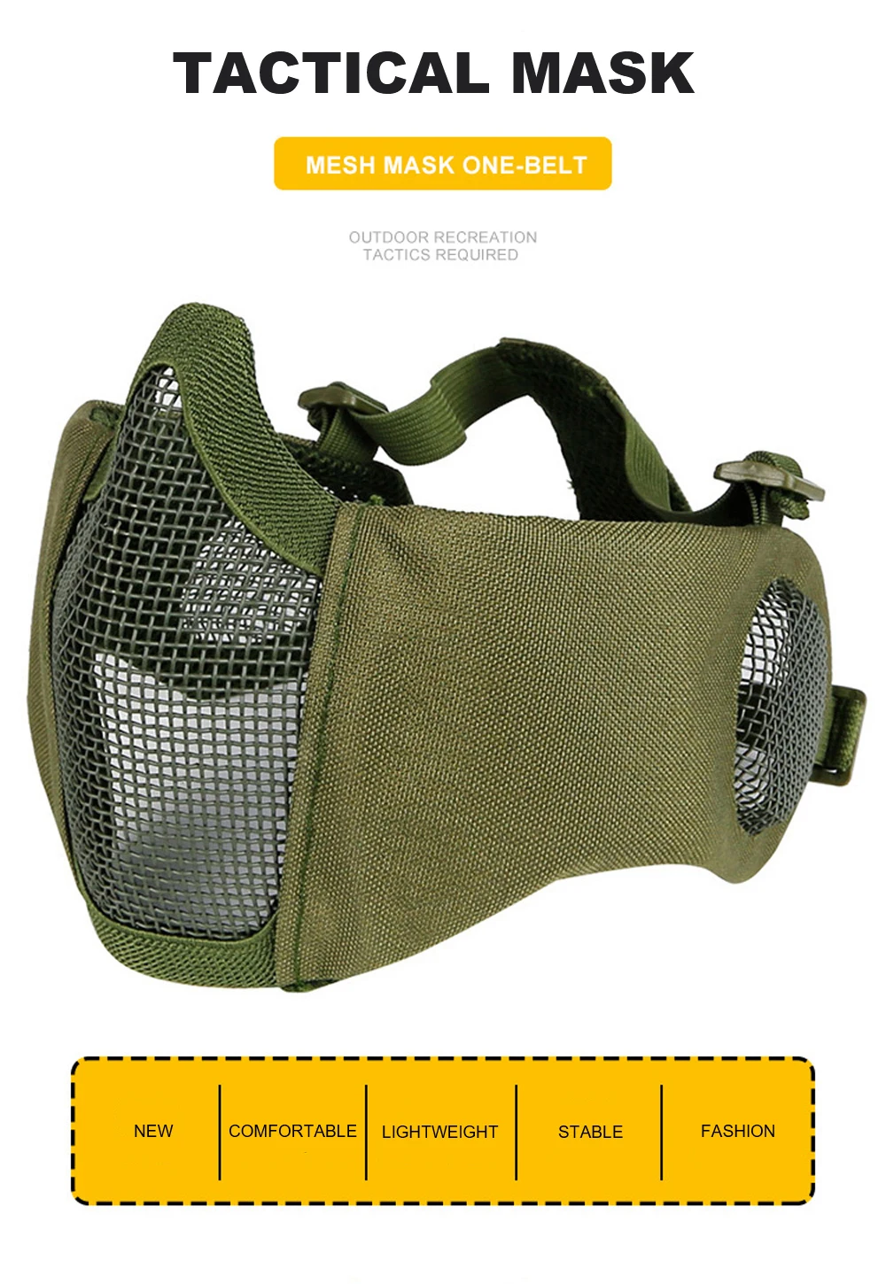 Máscara táctica para deportes al aire libre, versión de protección para los oídos de malla metálica CS Paintball Airsoft Wargame, media máscara facial, equipo de ciclismo de caza