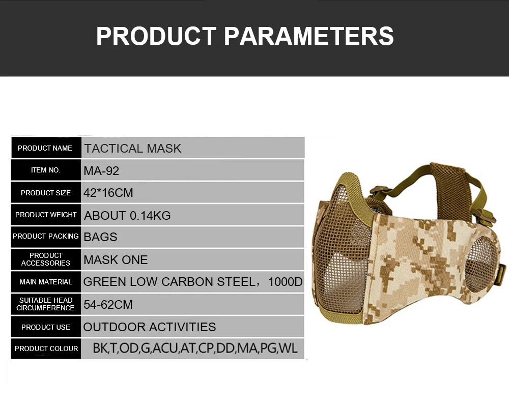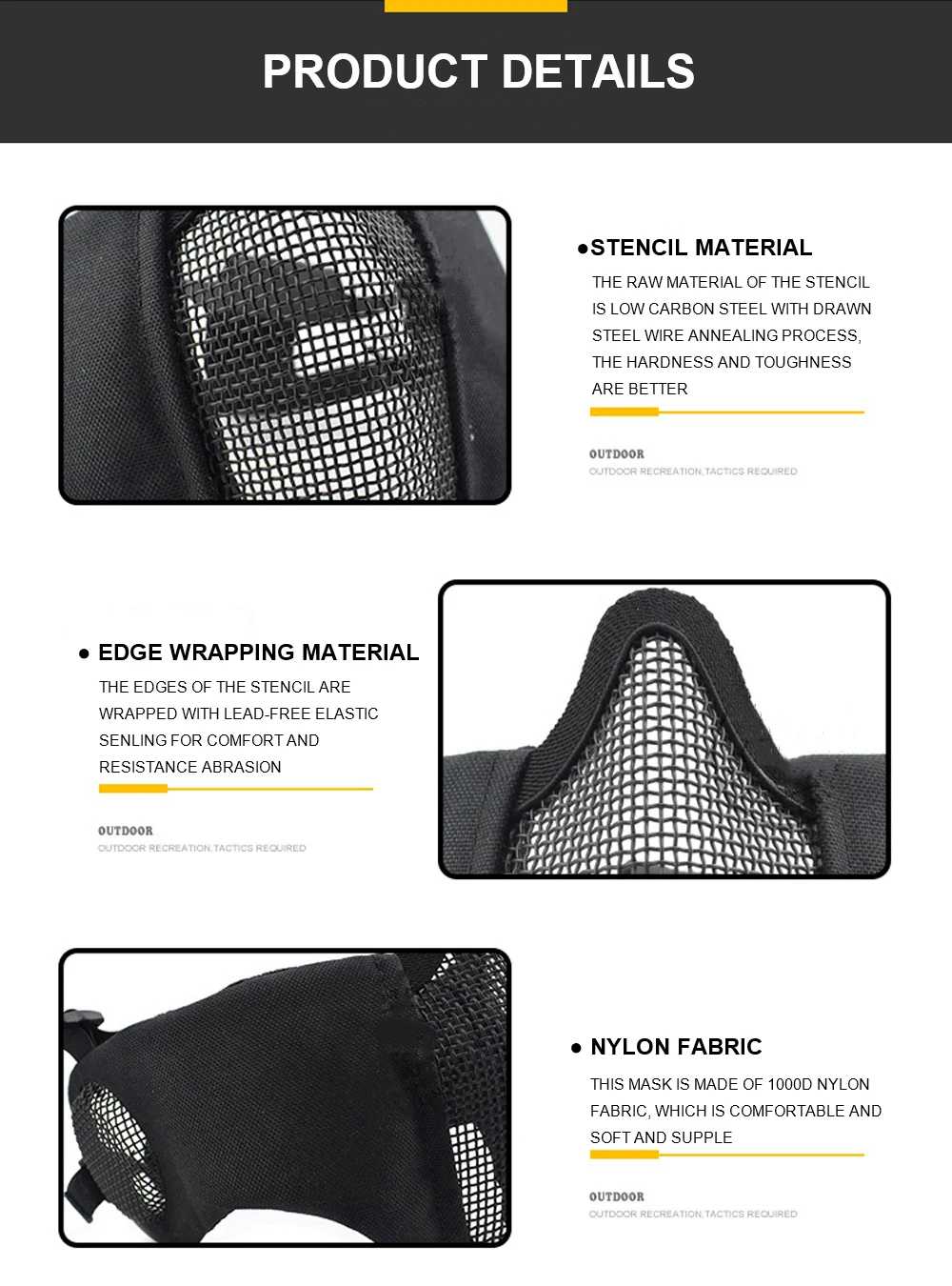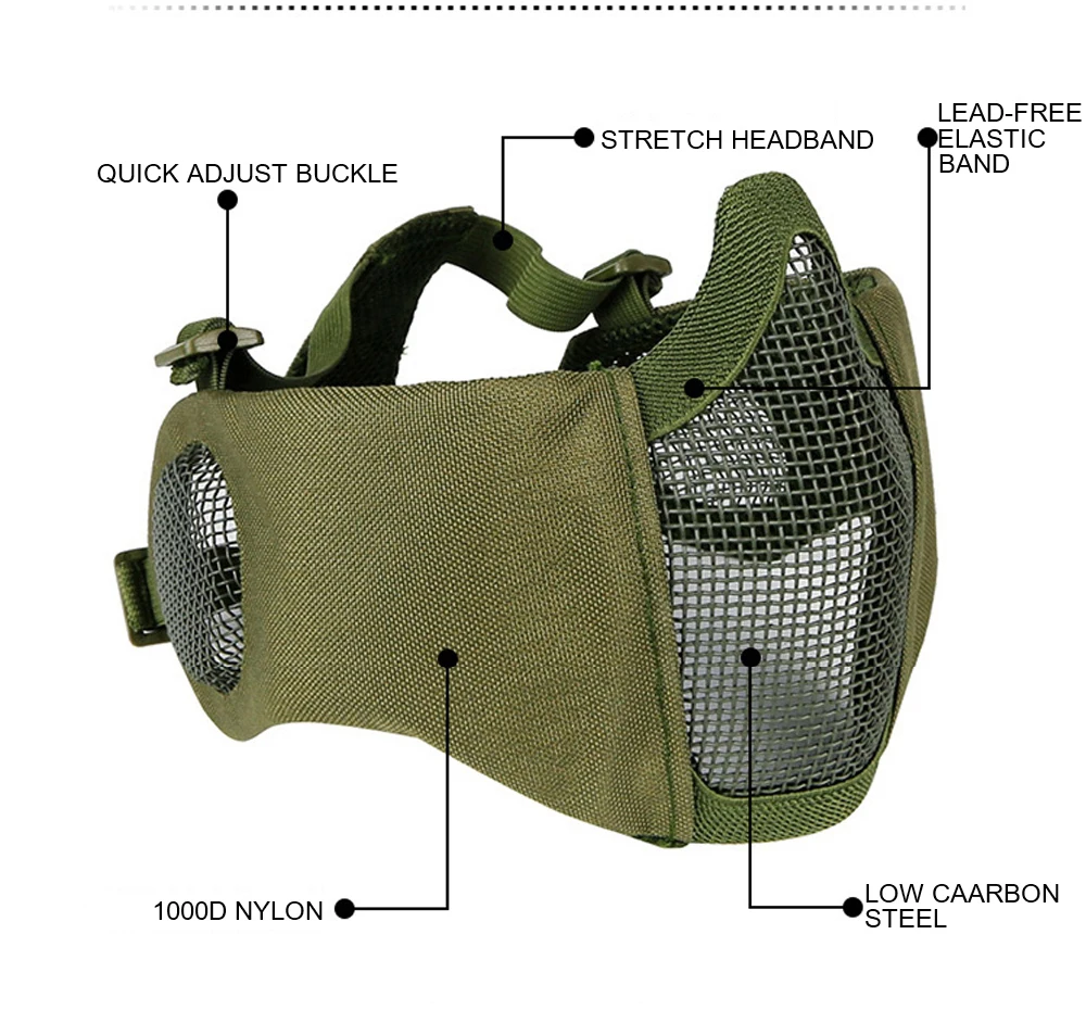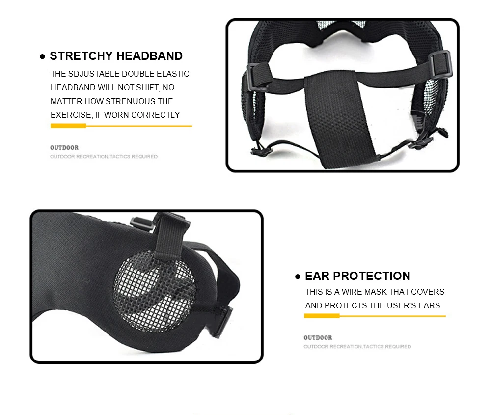 Máscara táctica para deportes al aire libre, versión de protección para los oídos de malla metálica CS Paintball Airsoft Wargame, media máscara facial, equipo de ciclismo de caza