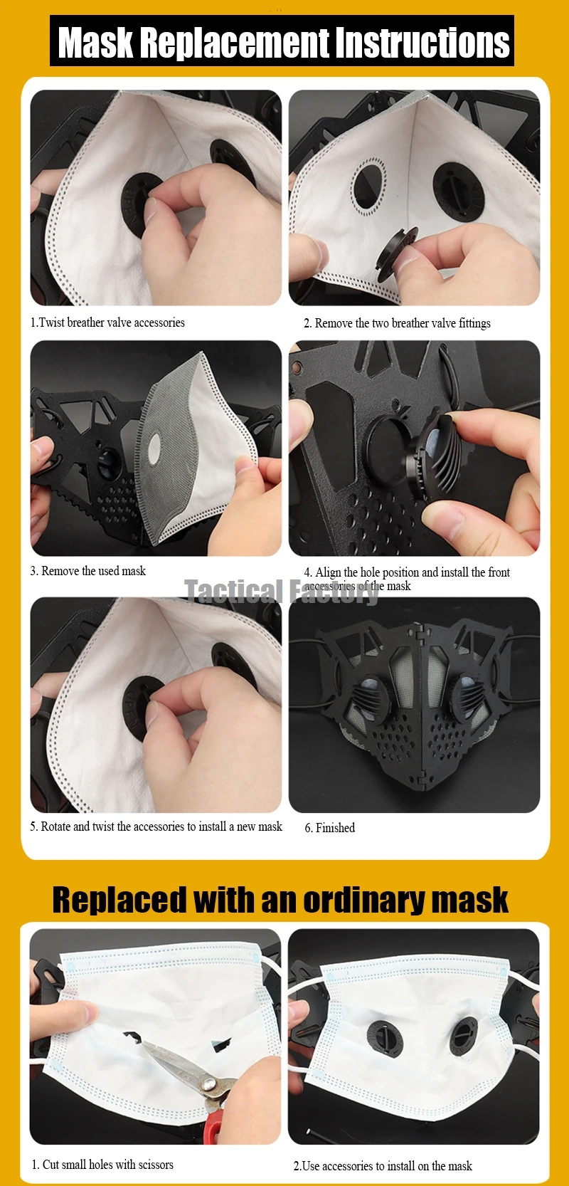 Paquete: 1 máscara facial cyberpunk, incluye 1 filtro de máscara facial
