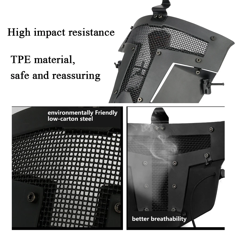 Máscara táctica de guerrero de hierro, malla de acero de cara completa TPE resistente a los impactos, protección transpirable, máscara ligera QR, accesorios de caza