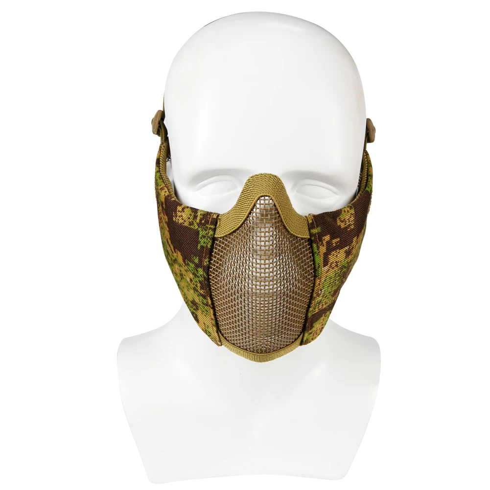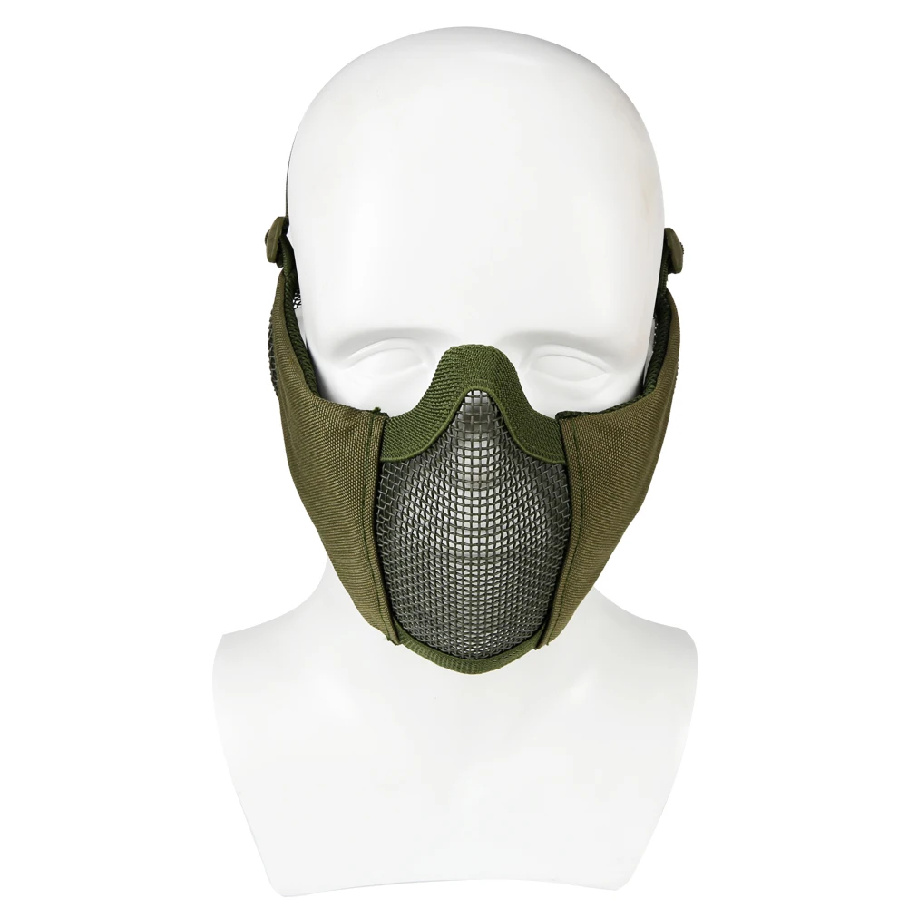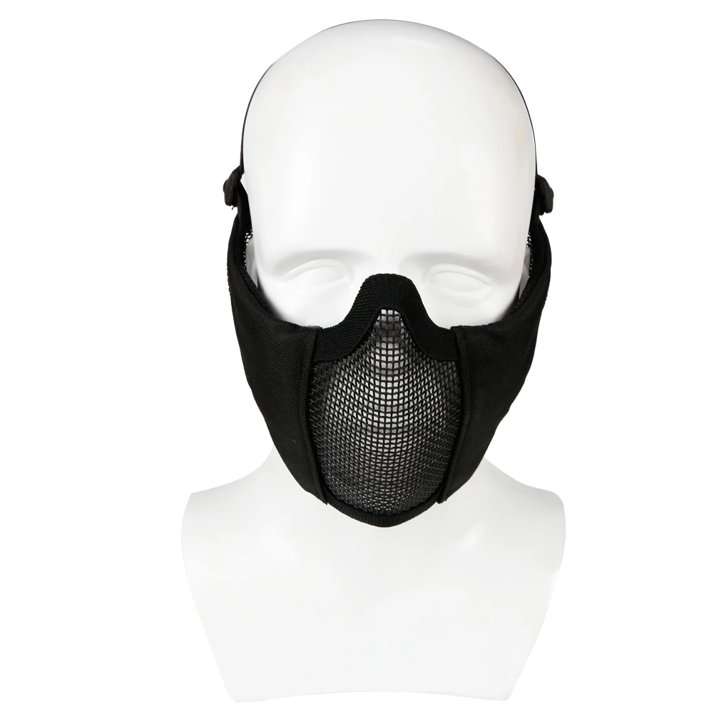 Máscara táctica de malla plegable con protección auditiva para Airsoft Paintball, correa elástica ajustable para casco de caza