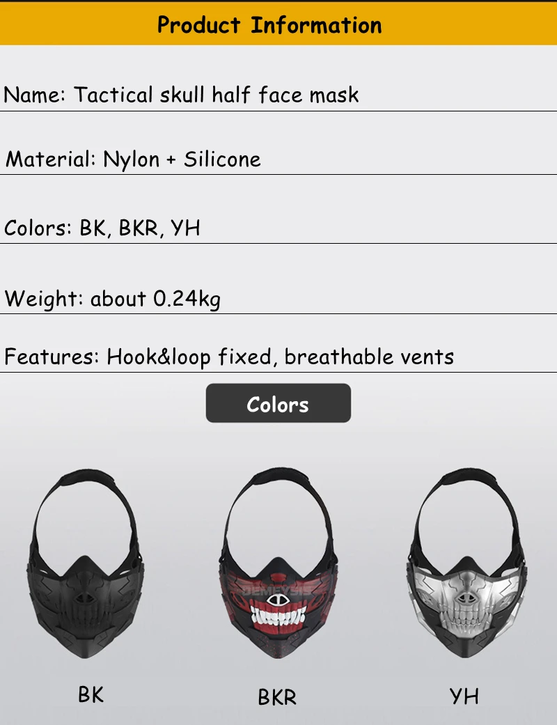 ●Diseño de calavera: El atrevido patrón de calaveras mejora la presencia táctica, ideal para la intimidación en escenarios competitivos o de juegos de rol.
