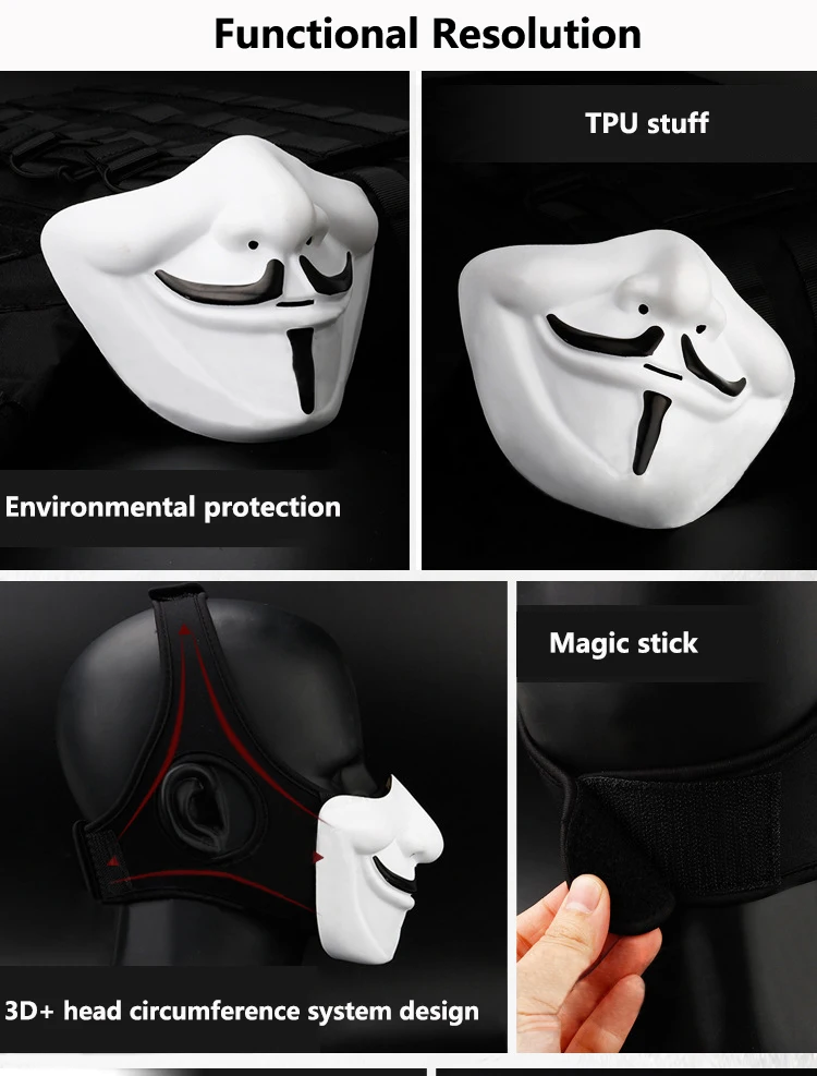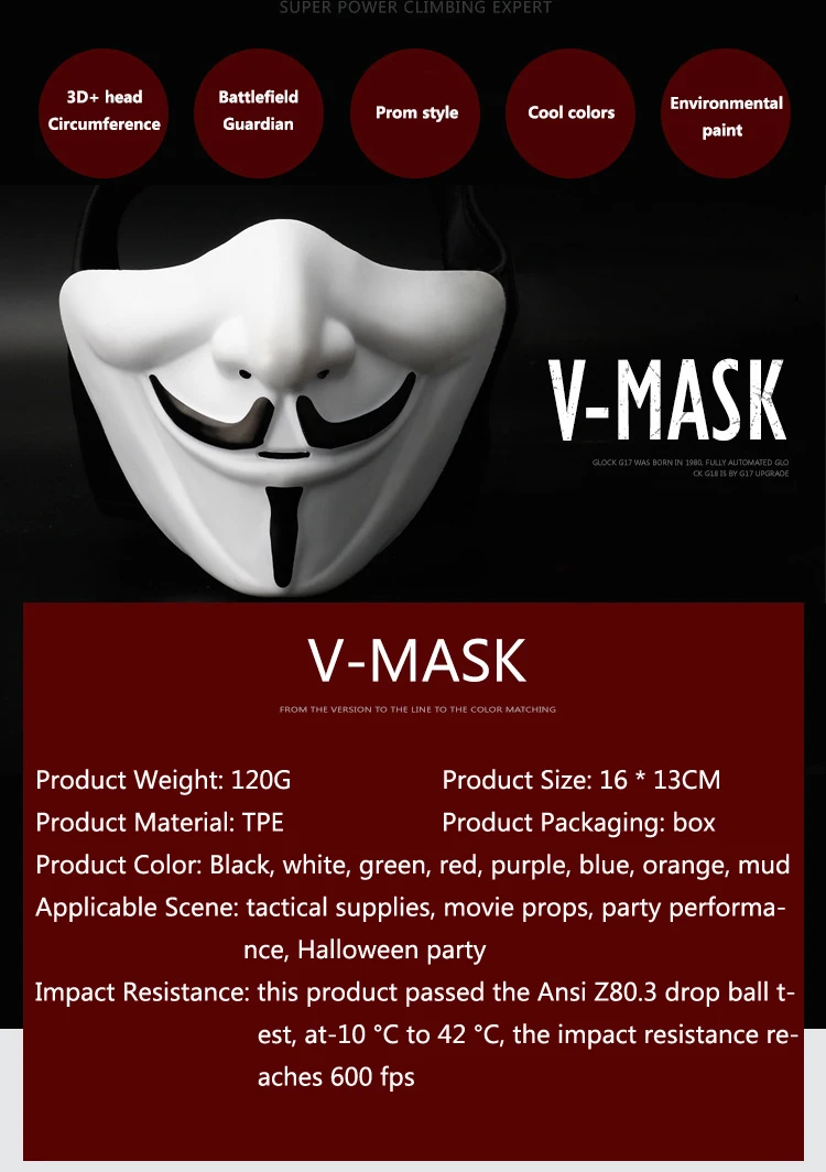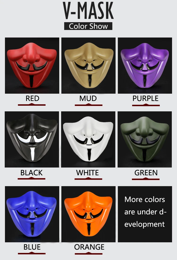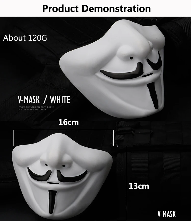 Máscara táctica de media cara para exteriores, máscara de caza CS Airsoft, accesorios de película, máscara V para fiesta de Halloween, máscara de mascarada