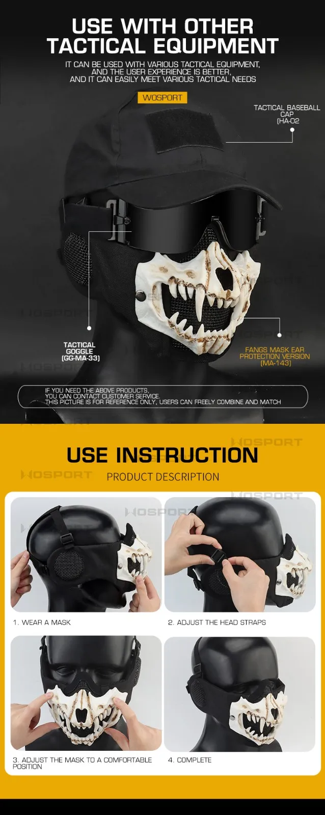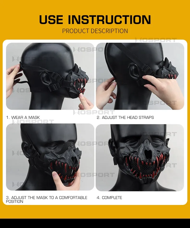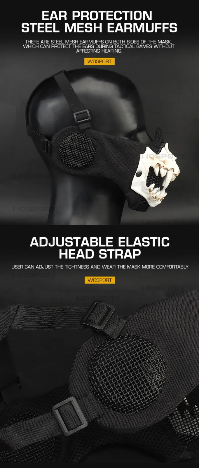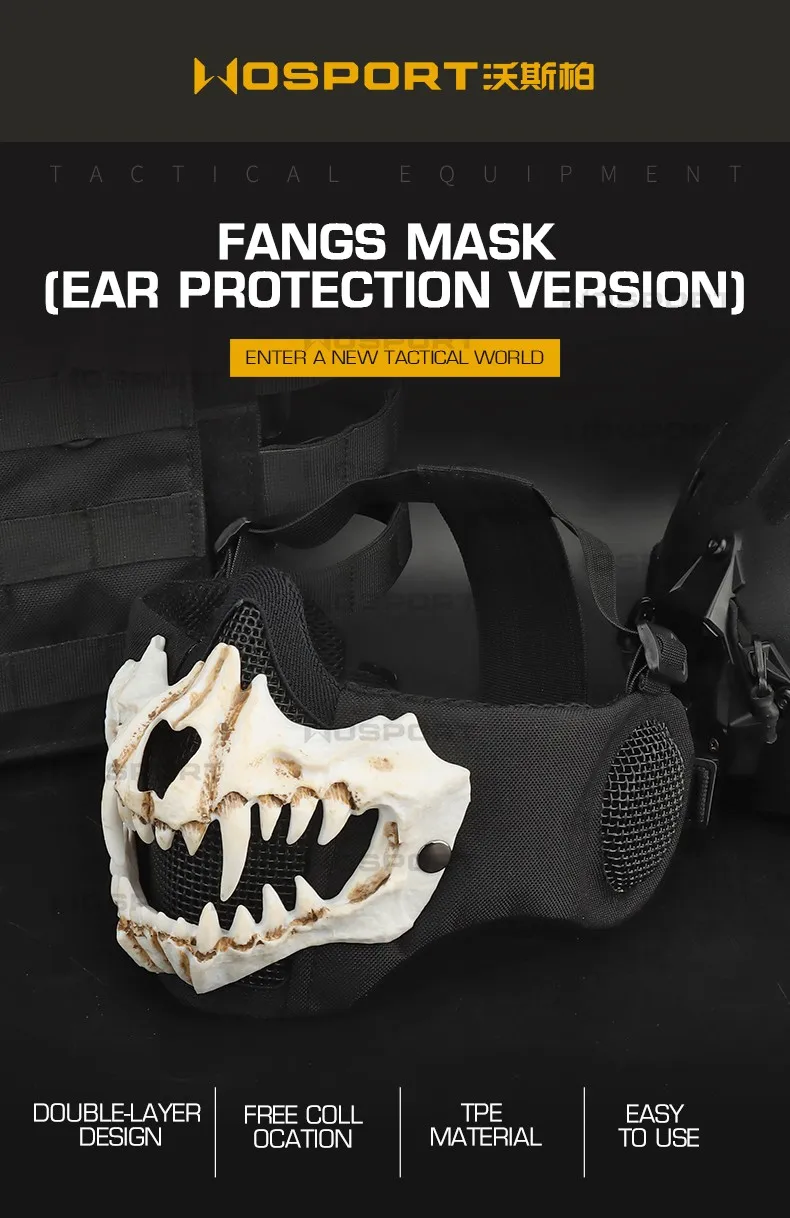 Máscara táctica de media cara, malla de acero con bajo contenido de carbono, transpirable, ajustable, protector para la oreja, Paintball Wargame CS Airsoft