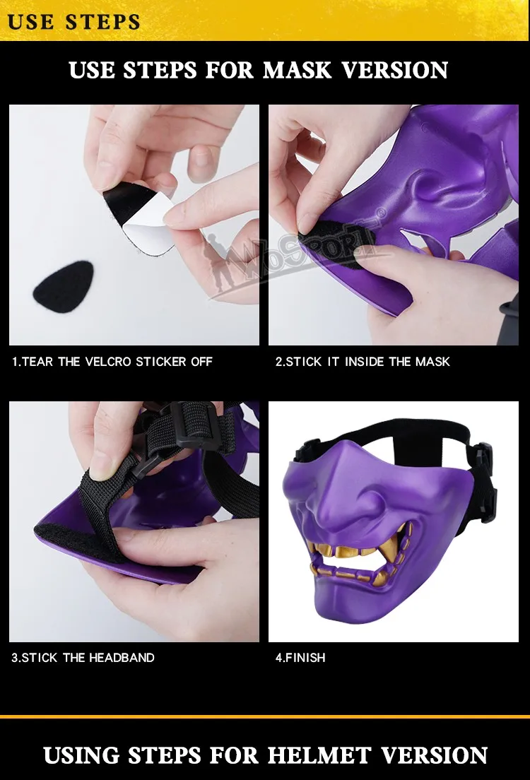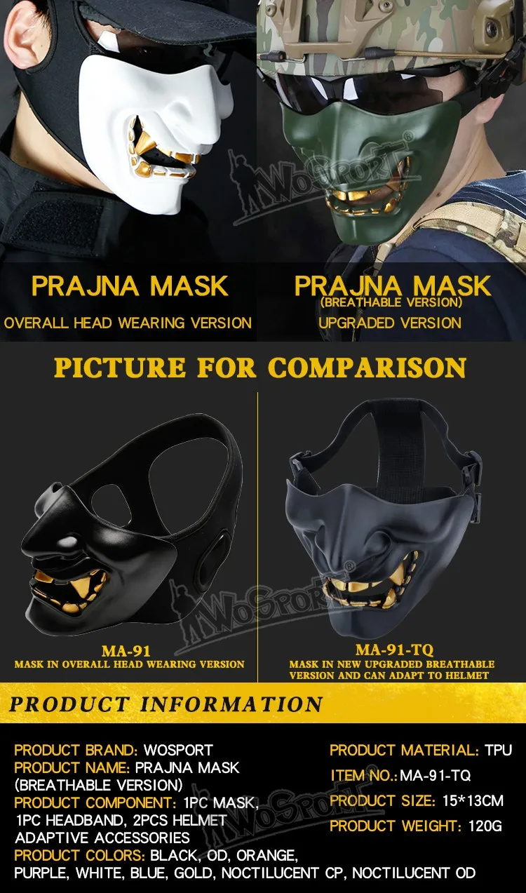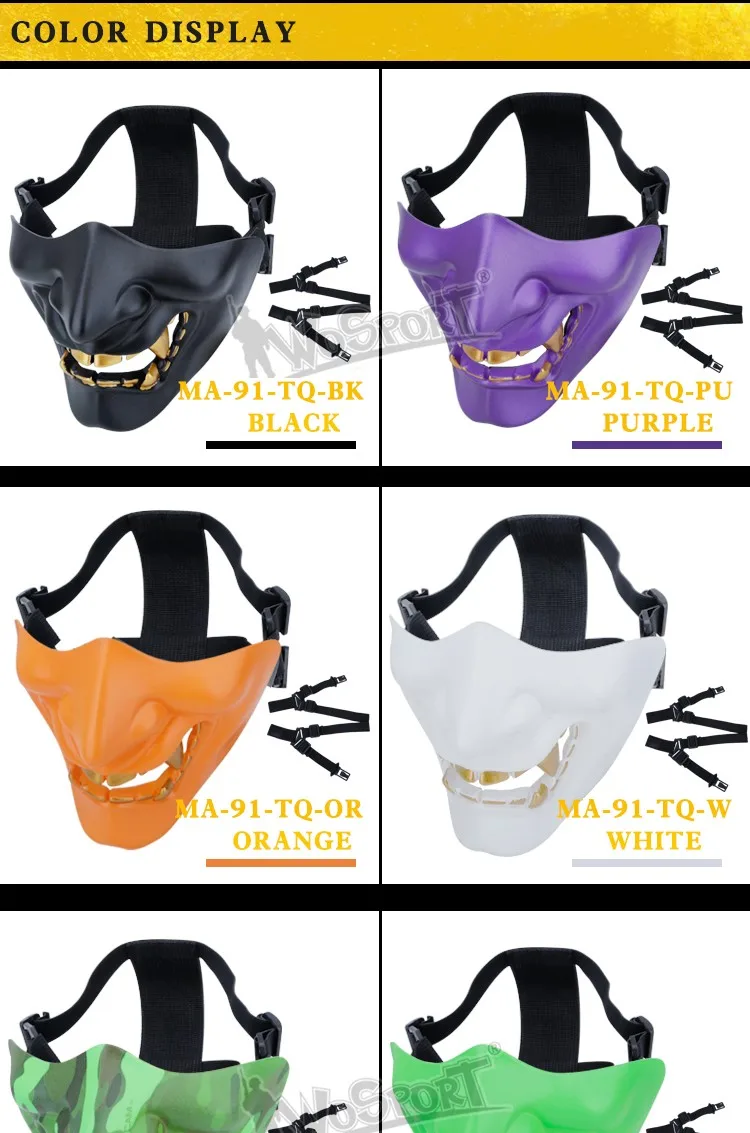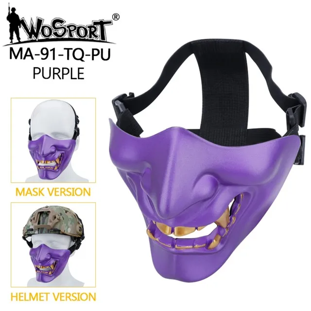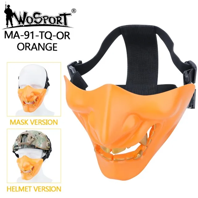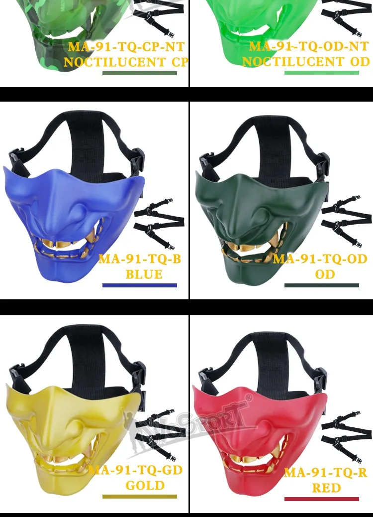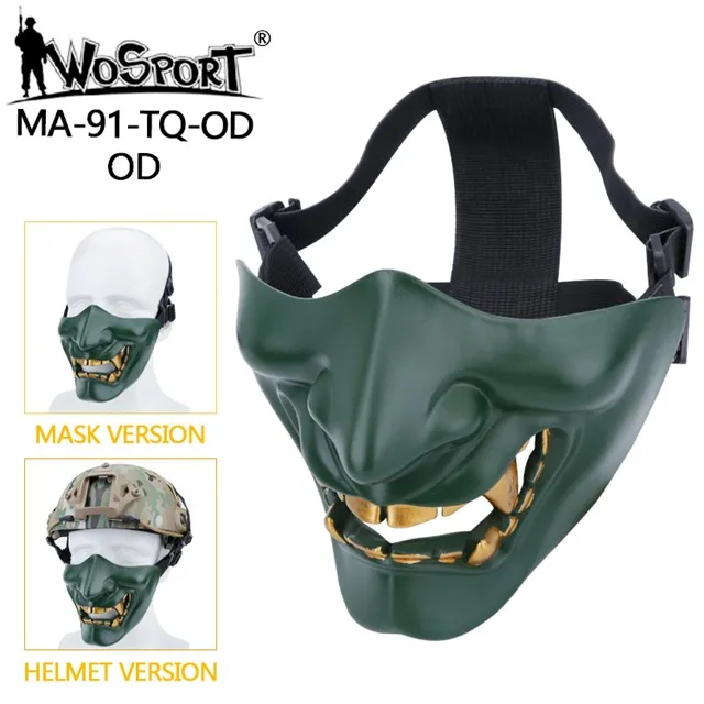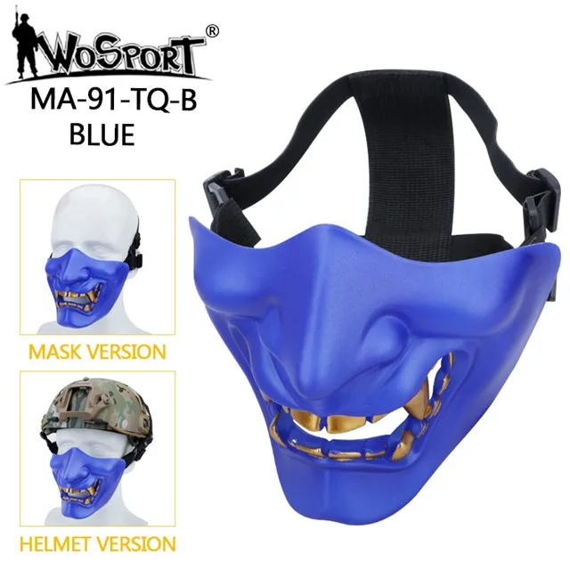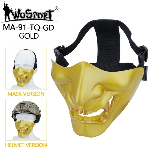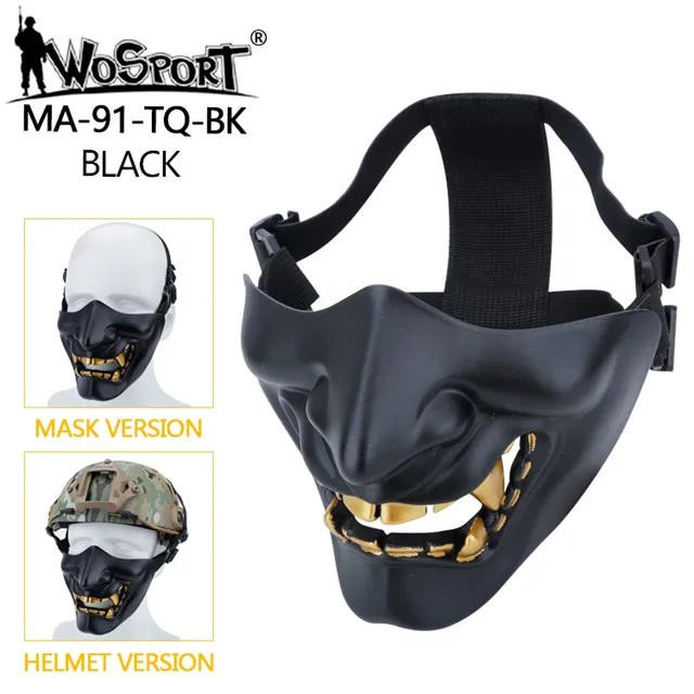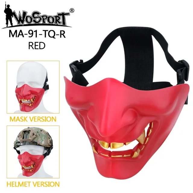 Máscaras tácticas de media cara, monstruo de demonio malvado Hannya Oni, máscaras protectoras Airsoft para baile de máscaras, fiesta, Halloween, juego de guerra Cs