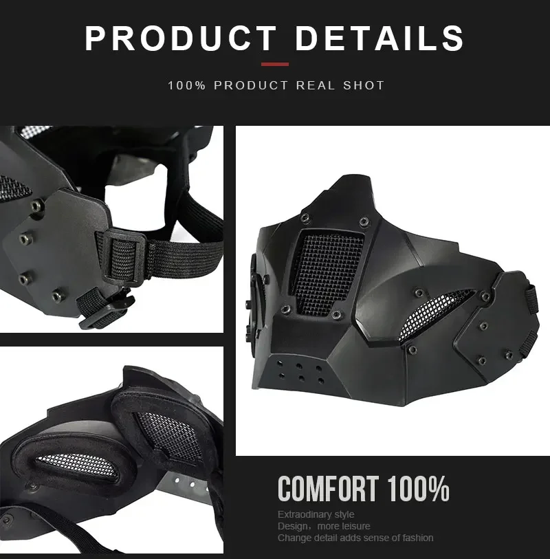 Máscara táctica de media cara, transpirable, Paintball, Airsoft, caza, malla, máscara protectora CS
