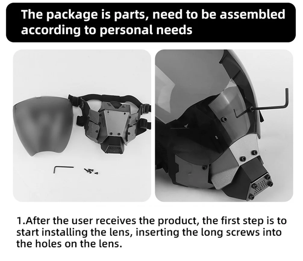 Lista del paquete: 1 * cuerpo de máscara, 1 * lente, llave + tornillos