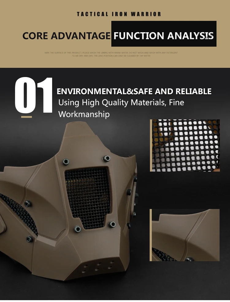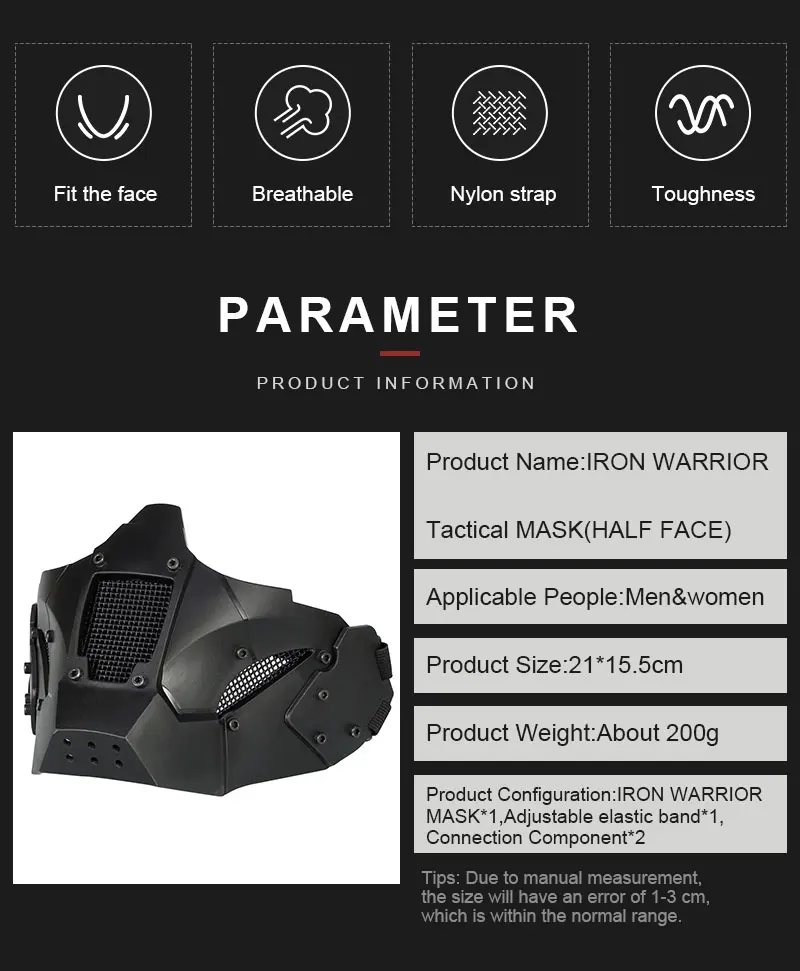 Máscara táctica militar de guerrero de hierro, máscara protectora transpirable de media cara para caza, Paintball, Airsoft, accesorios CS Wargame