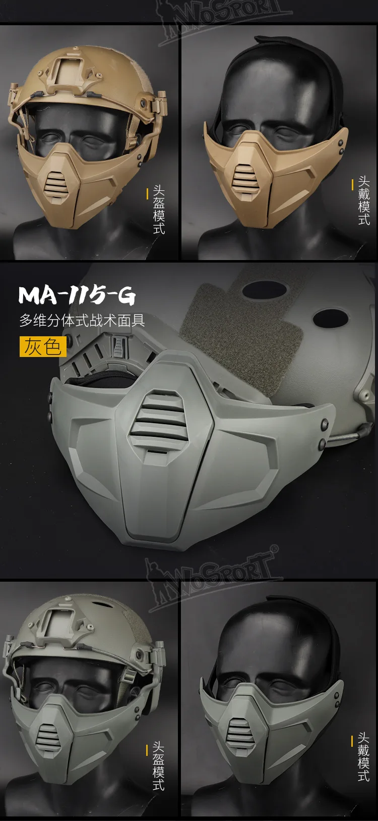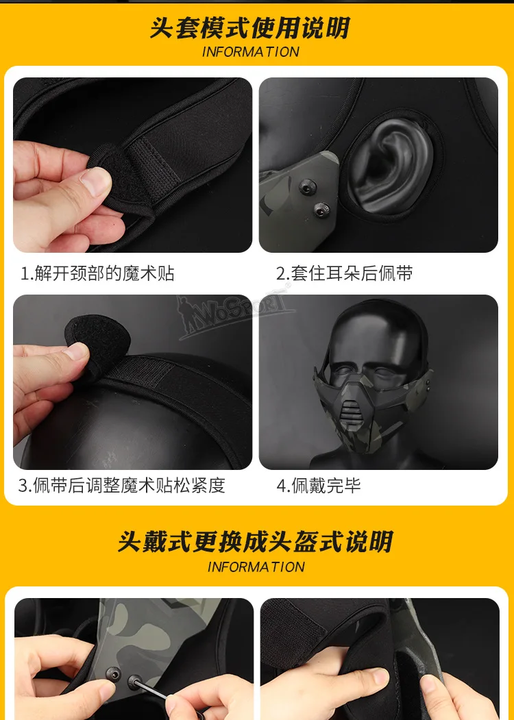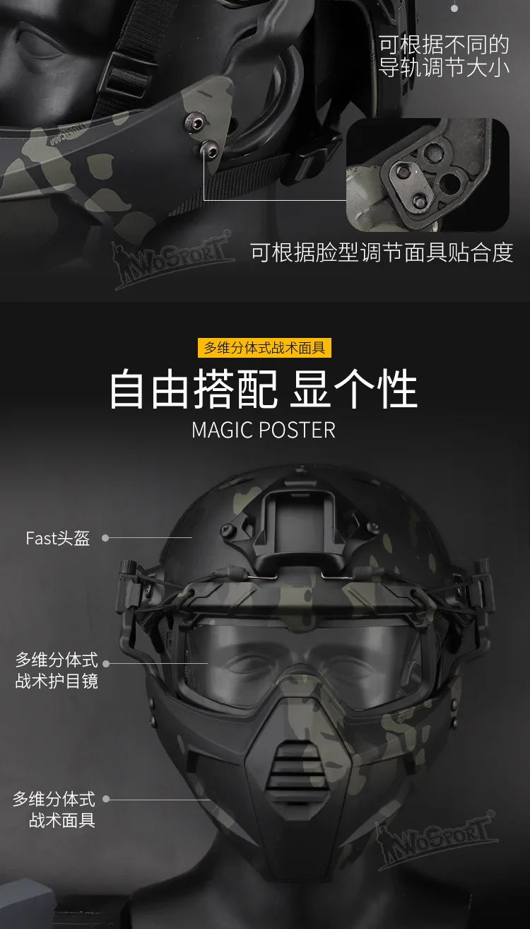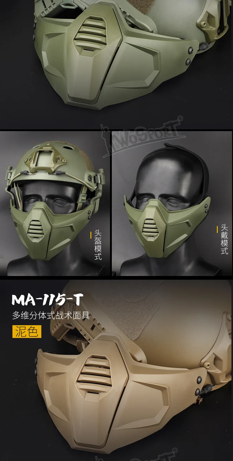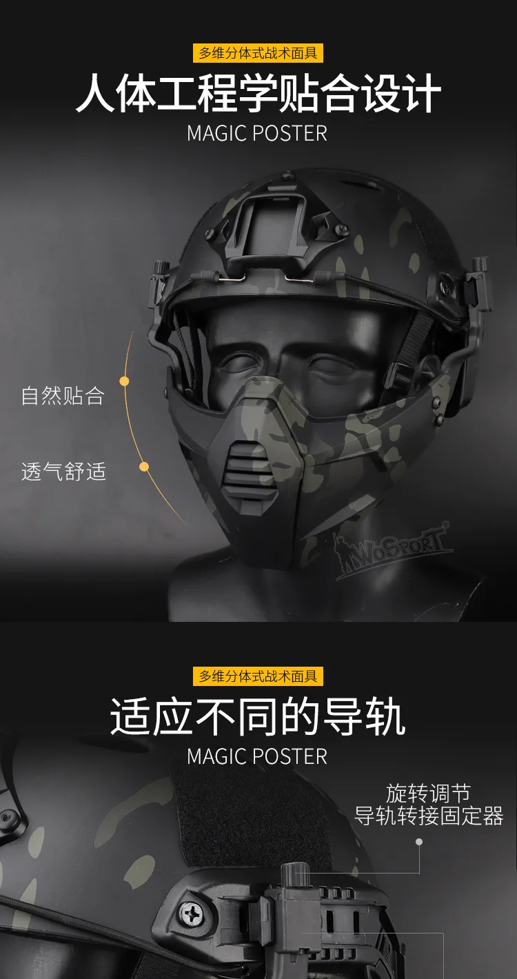 El paquete incluye la máscara, el casco elástico, el adaptador de riel guía, etc., y es una opción altamente compatible para entusiastas tácticos y escenarios de utilería.