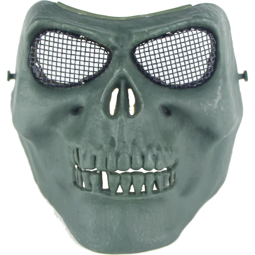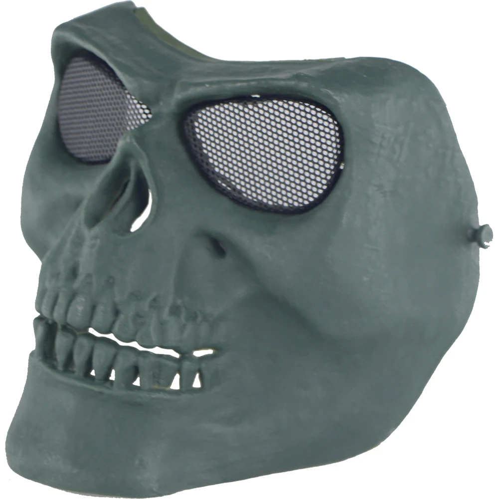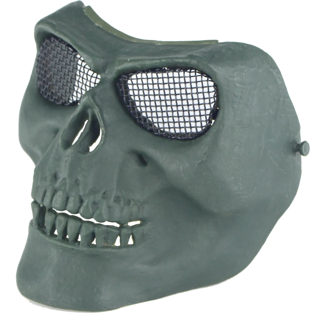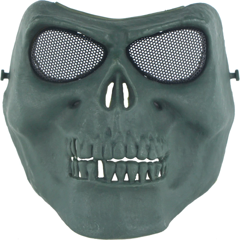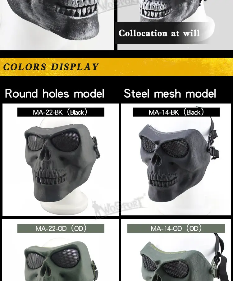 -- Nombre del producto: máscara de cráneo de cara completa -- Artículo No.: MA-14 -- Tamaño del producto: 19*11cm -- Peso bruto del producto: 0,25 KG -- Resistencia al impacto: 600FPS -- Circunferencia de la cabeza adecuada: 52 · 62cm -- Material principal: TPU, Red de acero para Protección Ambiental verde, acero bajo en carbono, cojín para Protección Ambiental de Taiwán EVA