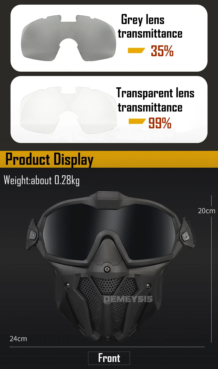 ✔ Lente de TPU + PC: resistente a impactos, protección facial completa