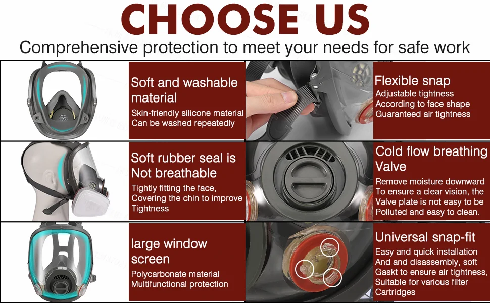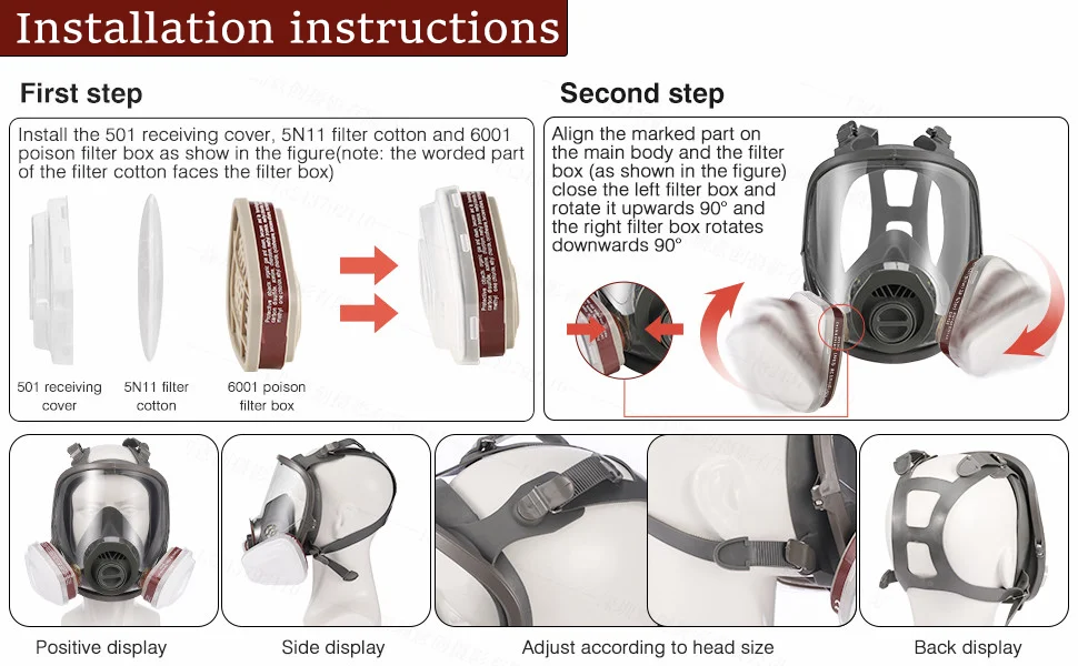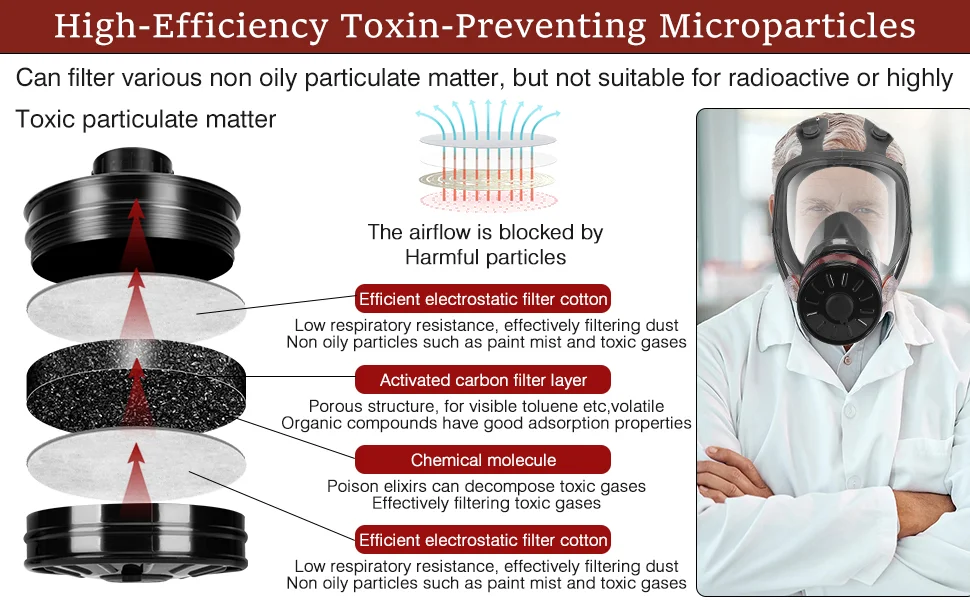 1 máscara 6800, 2 filtros de gas orgánico 6001, 2 filtros de algodón 5N11, 1 filtro de carbón activado de 40 mm, 2 cubiertas de filtro