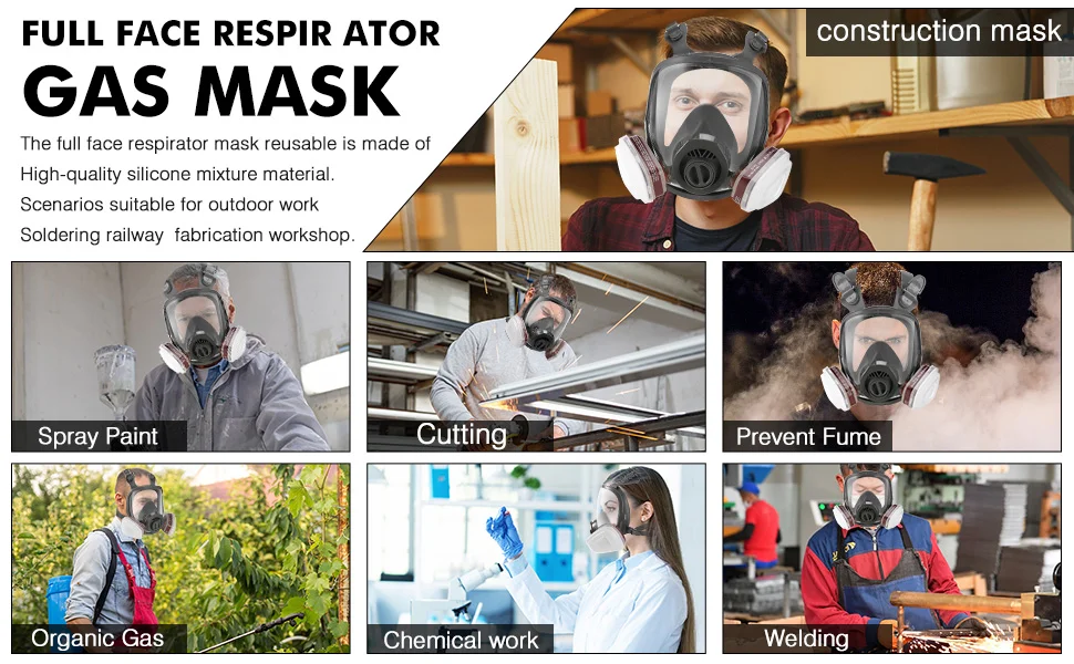 1 máscara 6800, 2 filtros de gas orgánico 6001, filtros de algodón 20x 5N11, 1 filtro de carbón activado de 40 mm, 2 cubiertas de filtro