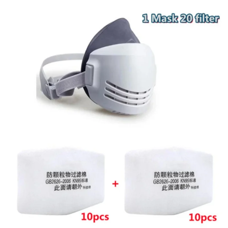Máscara antipolvo + filtro de algodón, respirador de media cara, máscara a prueba de polvo, construcción industrial, niebla, seguridad, máscara de gas