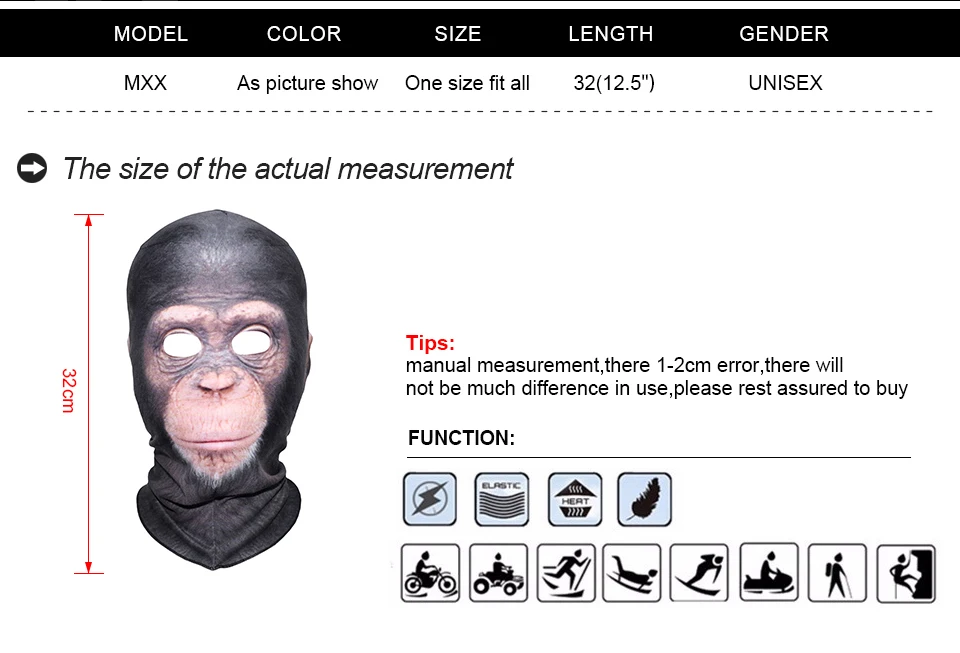 Agujeros en los ojos para una fácil visión. El patrón es vívido y vívido, no es fácil de desvanecer, no es fácil de pelar, se ajusta a la cara, muestra perfectamente las líneas faciales.