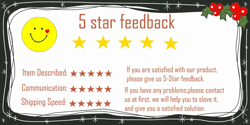 1. Si está satisfecho con nuestros productos y servicios, apreciaremos sus comentarios positivos y elogios de 5 estrellas.