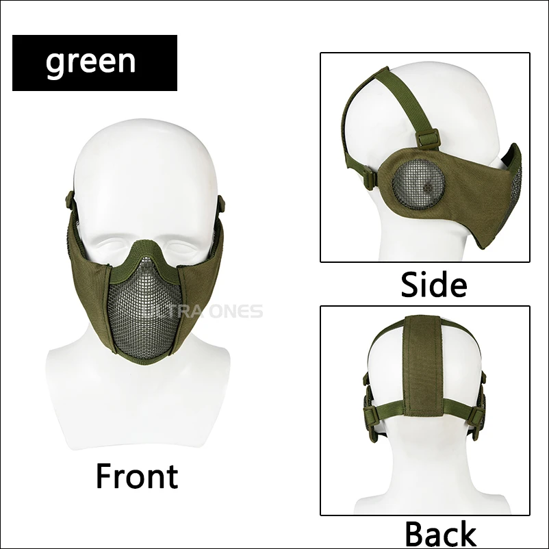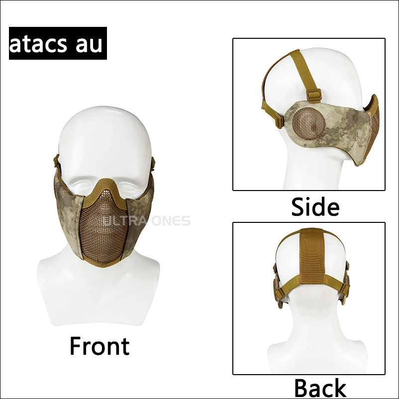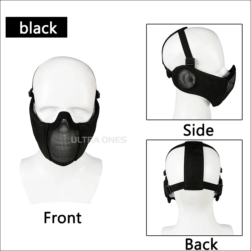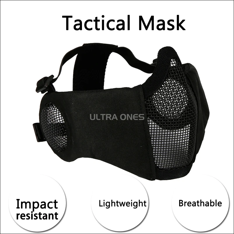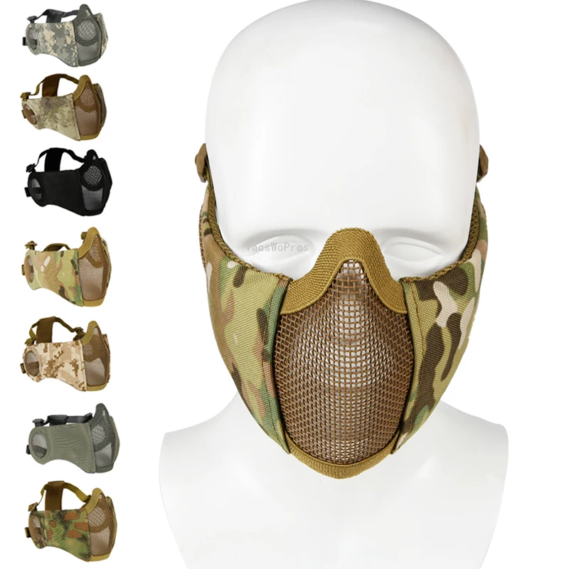 Máscara de combate táctica de acero de bajo carbono de malla Airsoft, máscara de media cara de seguridad para hombres y mujeres, máscara de protección auditiva para tiro de PaintballNombre del producto: máscara táctica (versión de protección auditiva)