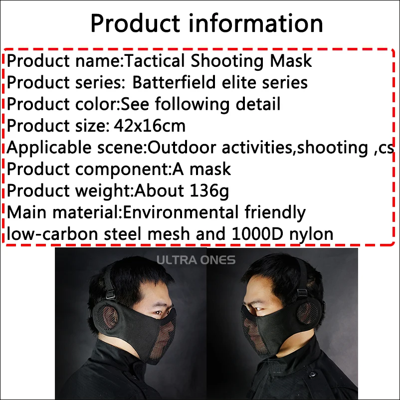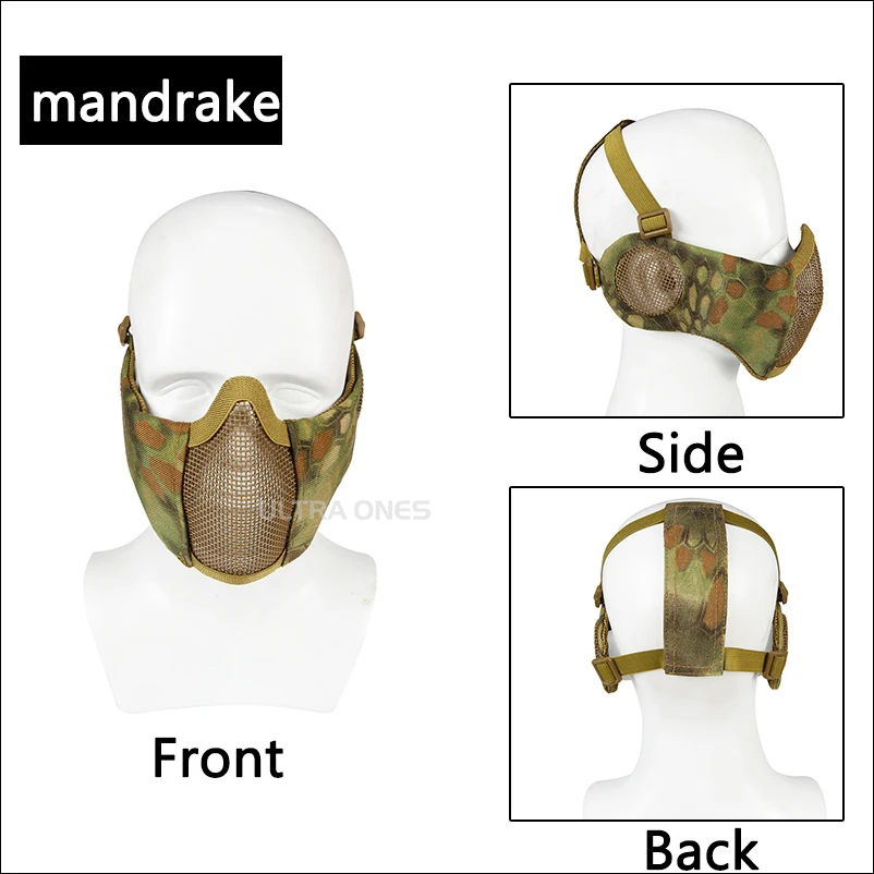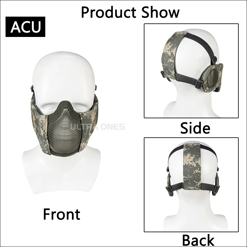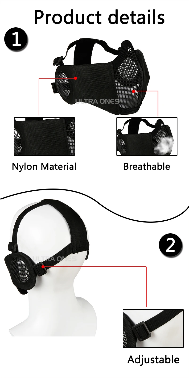 Máscara de combate táctica de acero de bajo carbono de malla Airsoft, máscara de media cara de seguridad para hombres y mujeres, máscara de protección auditiva para tiro de PaintballNombre del producto: máscara táctica (versión de protección auditiva)
