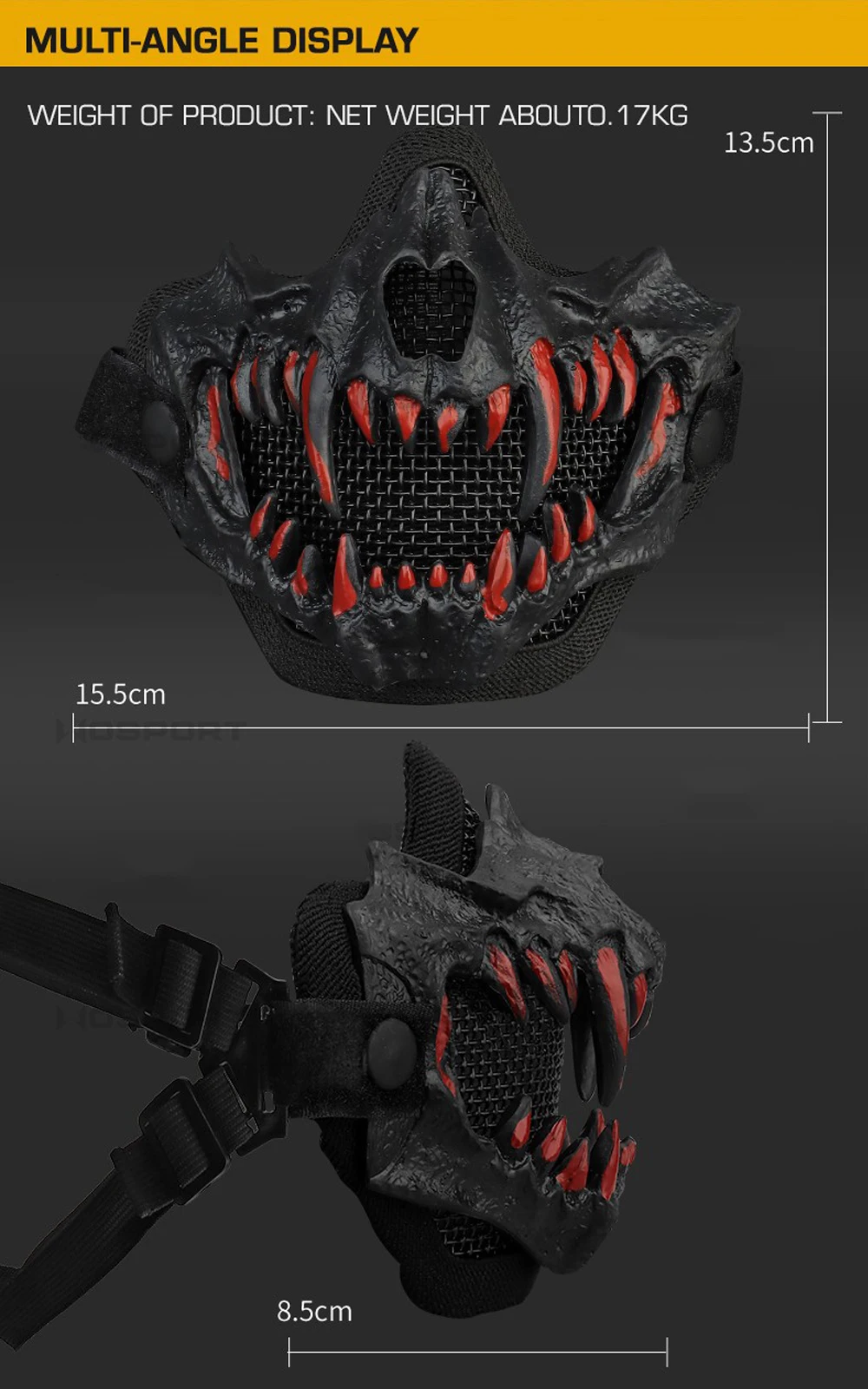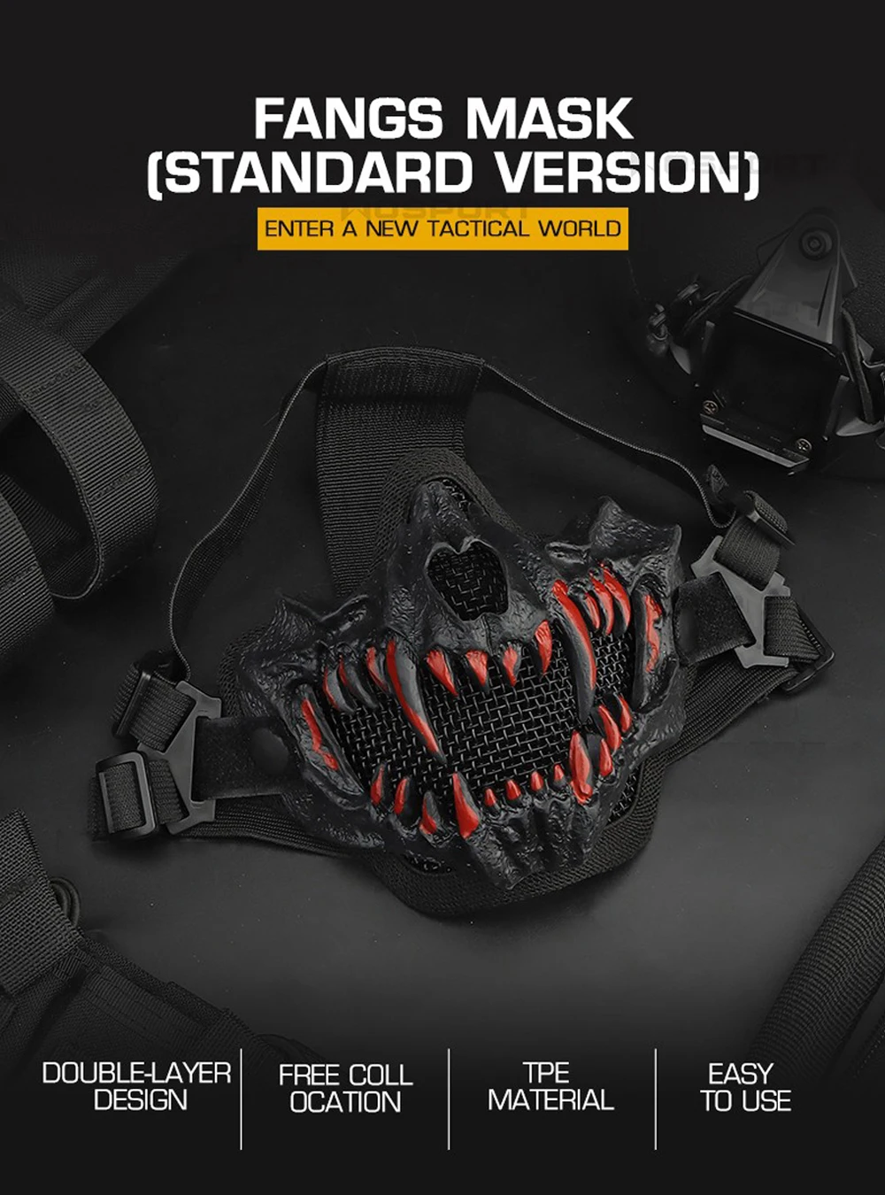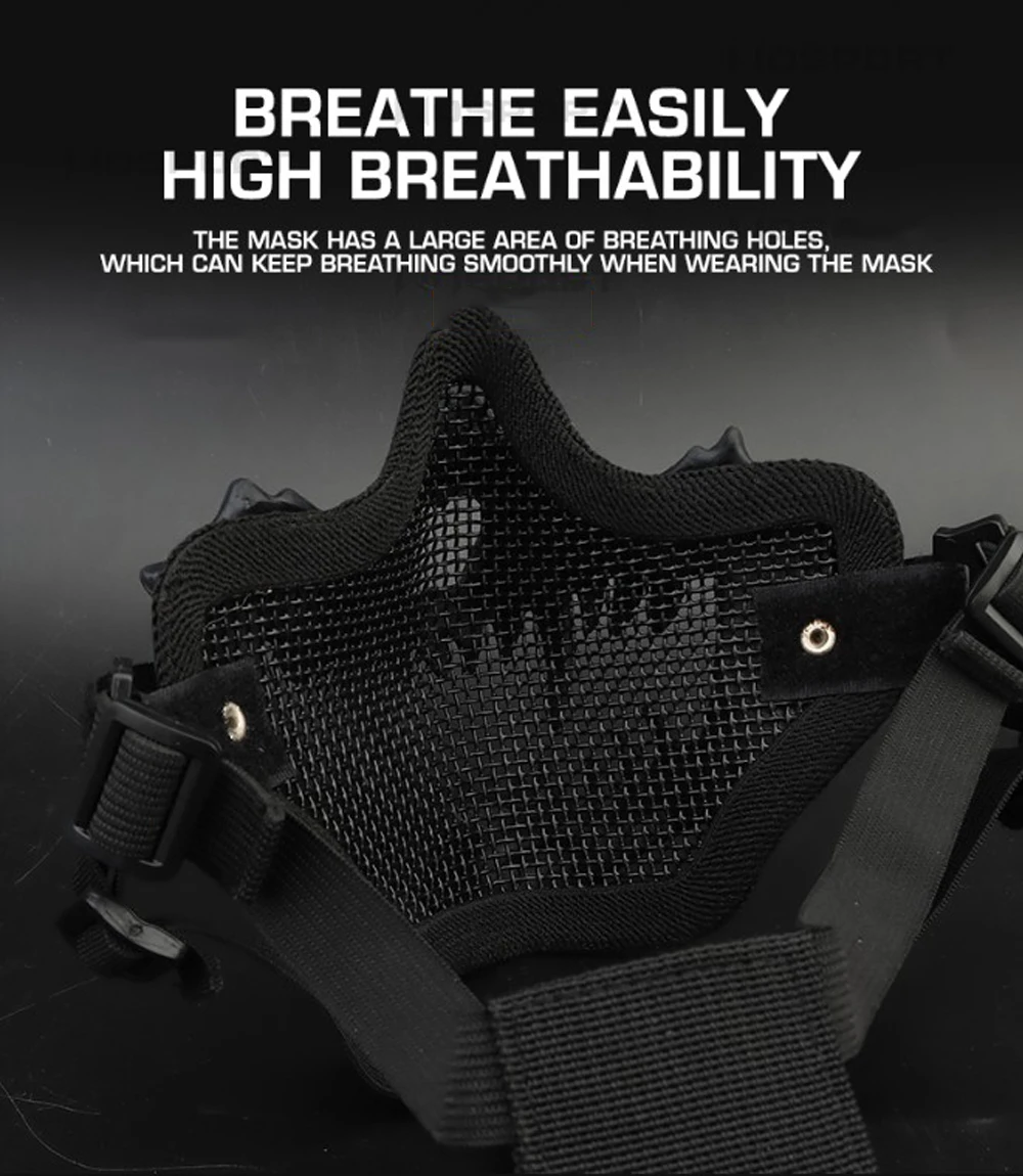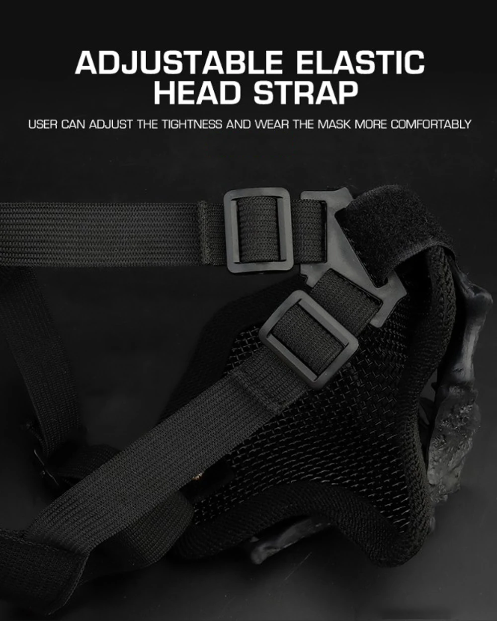 Máscara facial Airsoft, malla de acero transpirable, Paintball CS Wargame, máscaras protectoras ajustables para Halloween, Cosplay, colmillos, accesorios de terror
