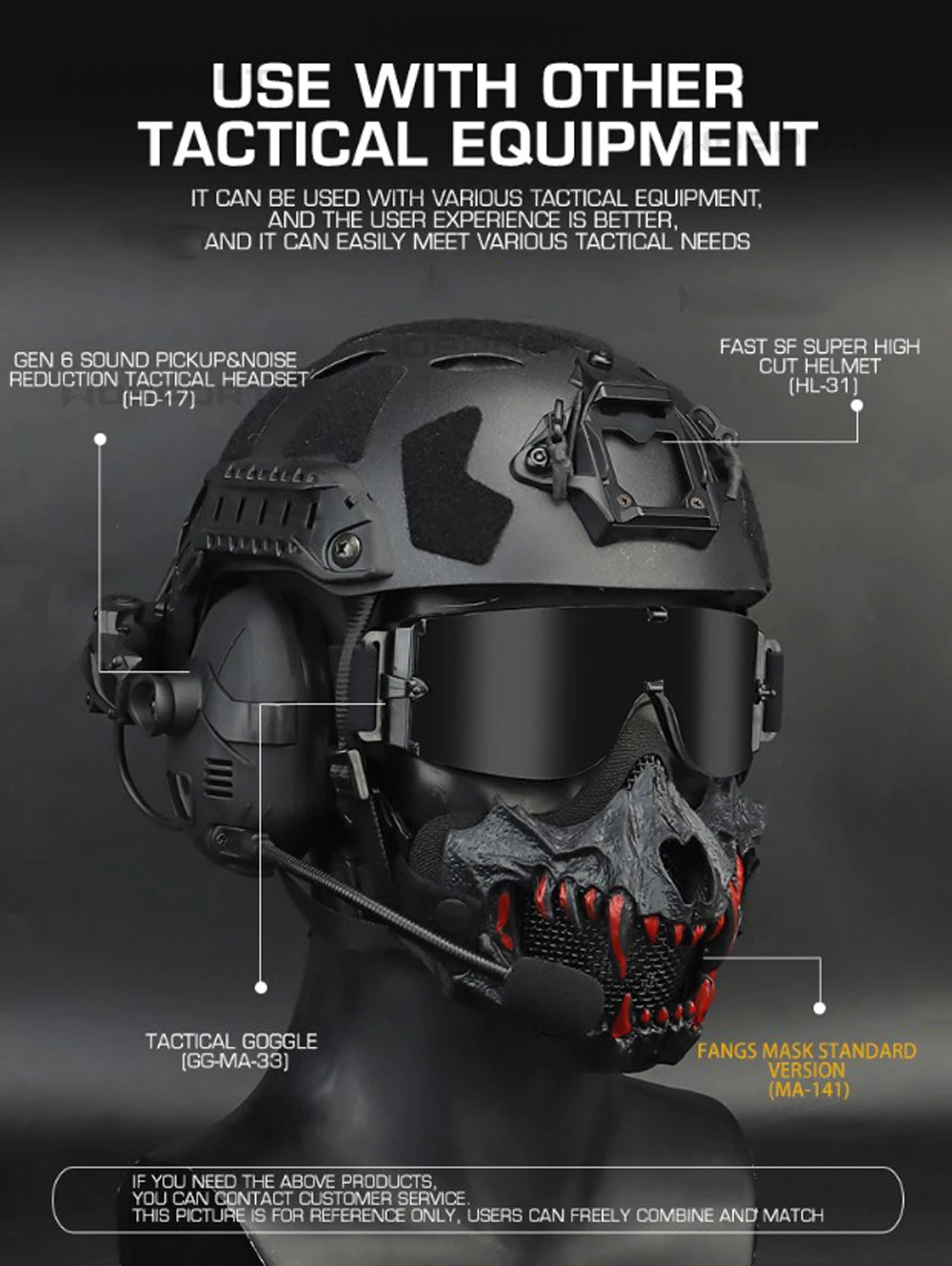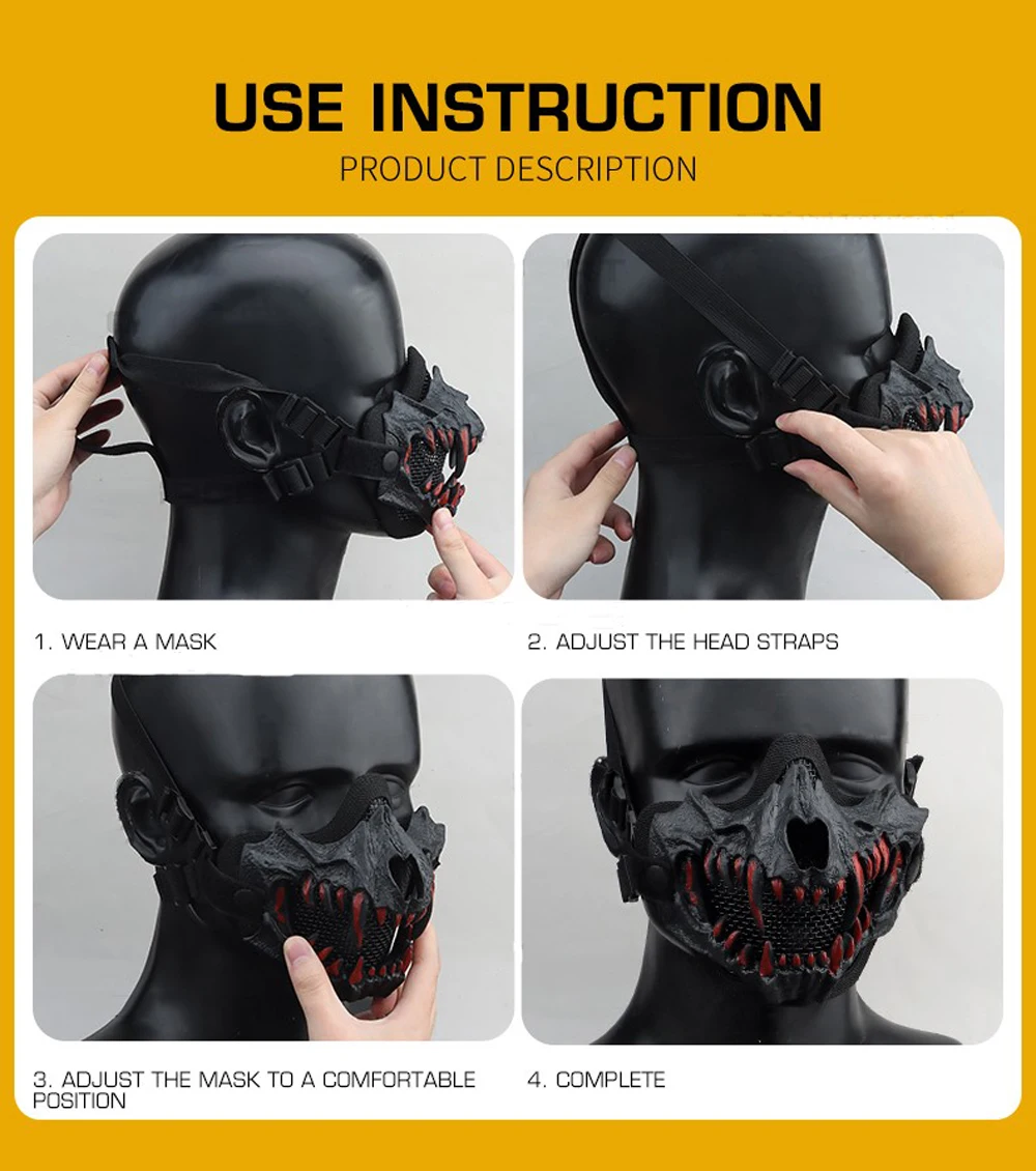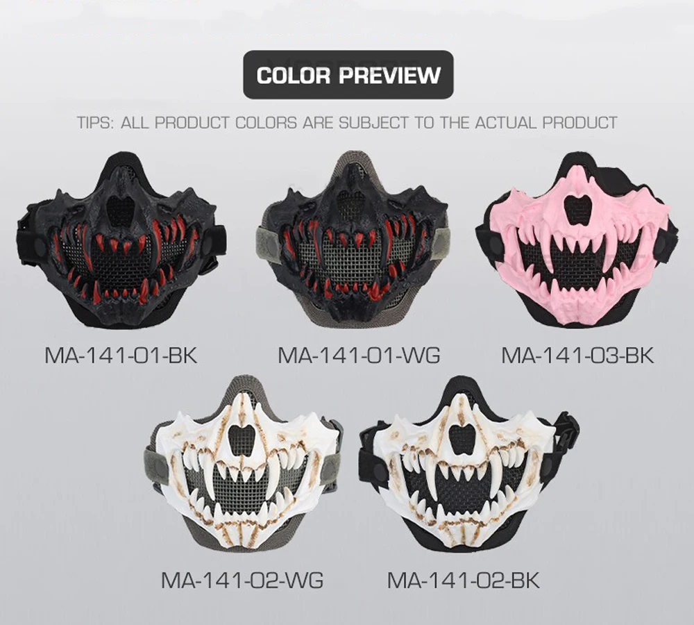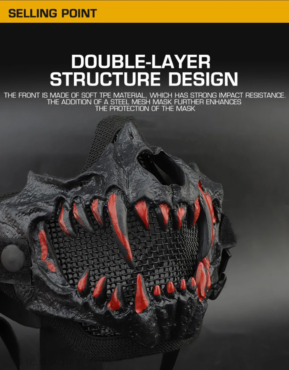 Máscara facial Airsoft, malla de acero transpirable, Paintball CS Wargame, máscaras protectoras ajustables para Halloween, Cosplay, colmillos, accesorios de terror