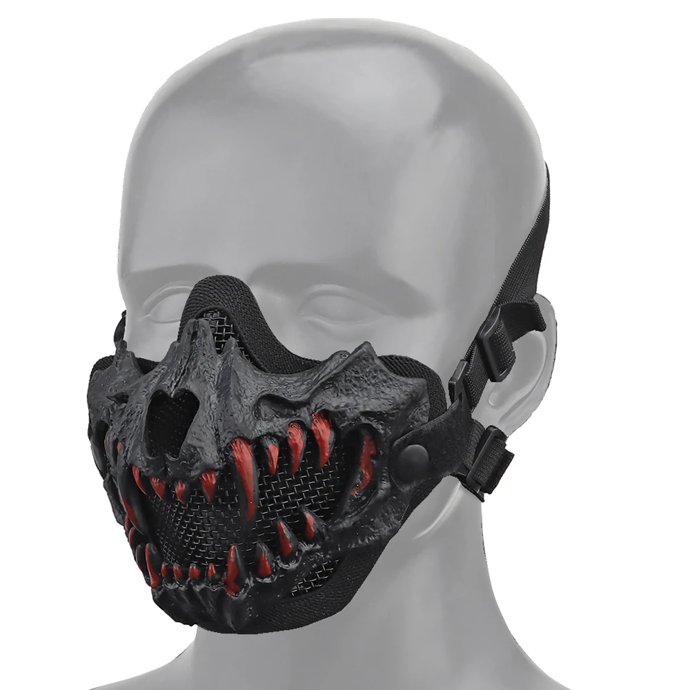 Máscara facial Airsoft, malla de acero transpirable, Paintball CS Wargame, máscaras protectoras ajustables para Halloween, Cosplay, colmillos, accesorios de terror