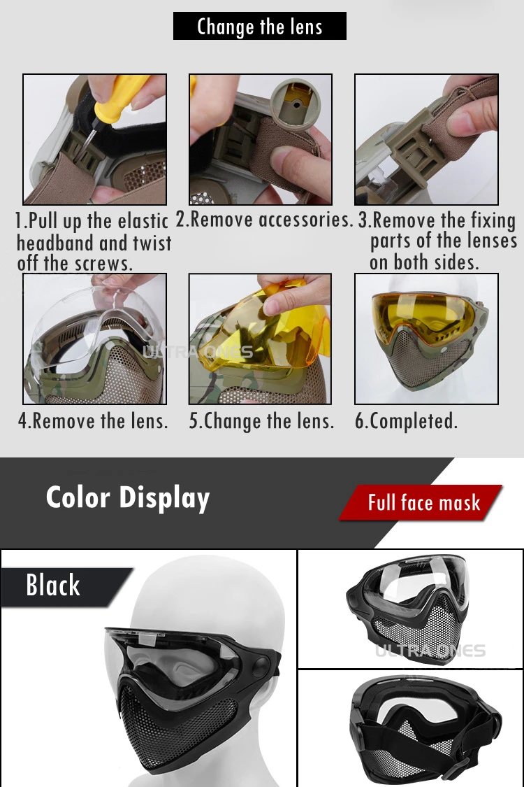 ● Material: Máscara principal:TPU, malla de acero: nylon, gafas: PC Lente