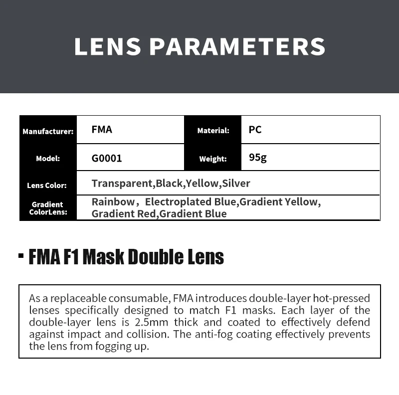 Mascarilla facial completa Fma F1, con lentes de repuesto dobles, FM-G0001