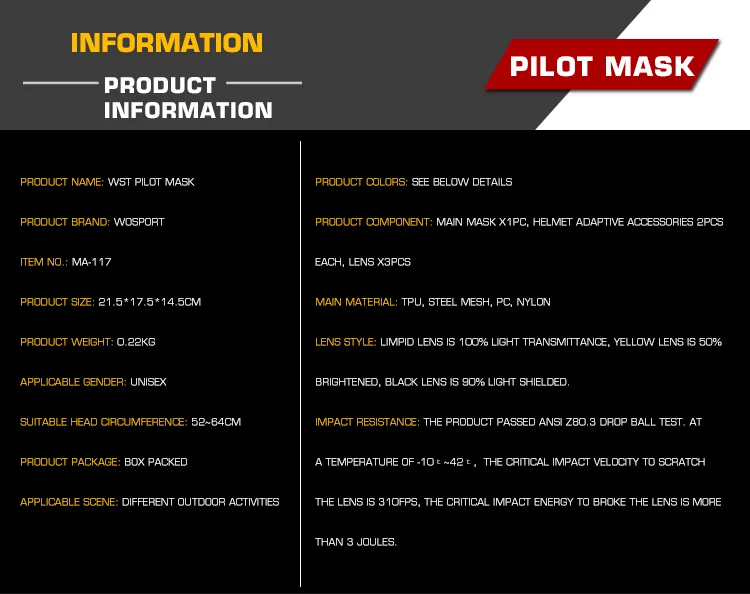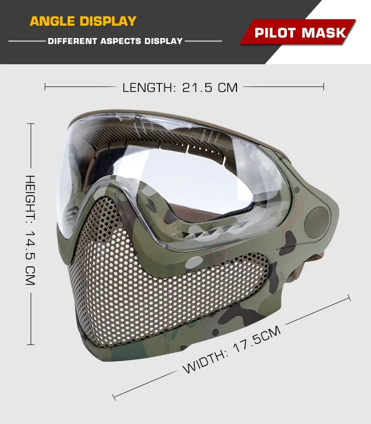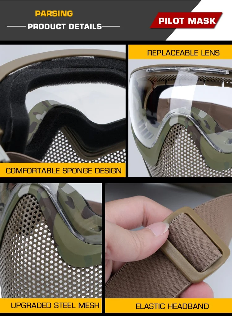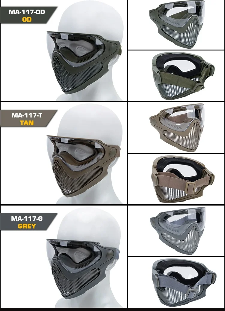 Material: La máscara: TPU; Malla de acero: nailon; Gafas: lente de PC