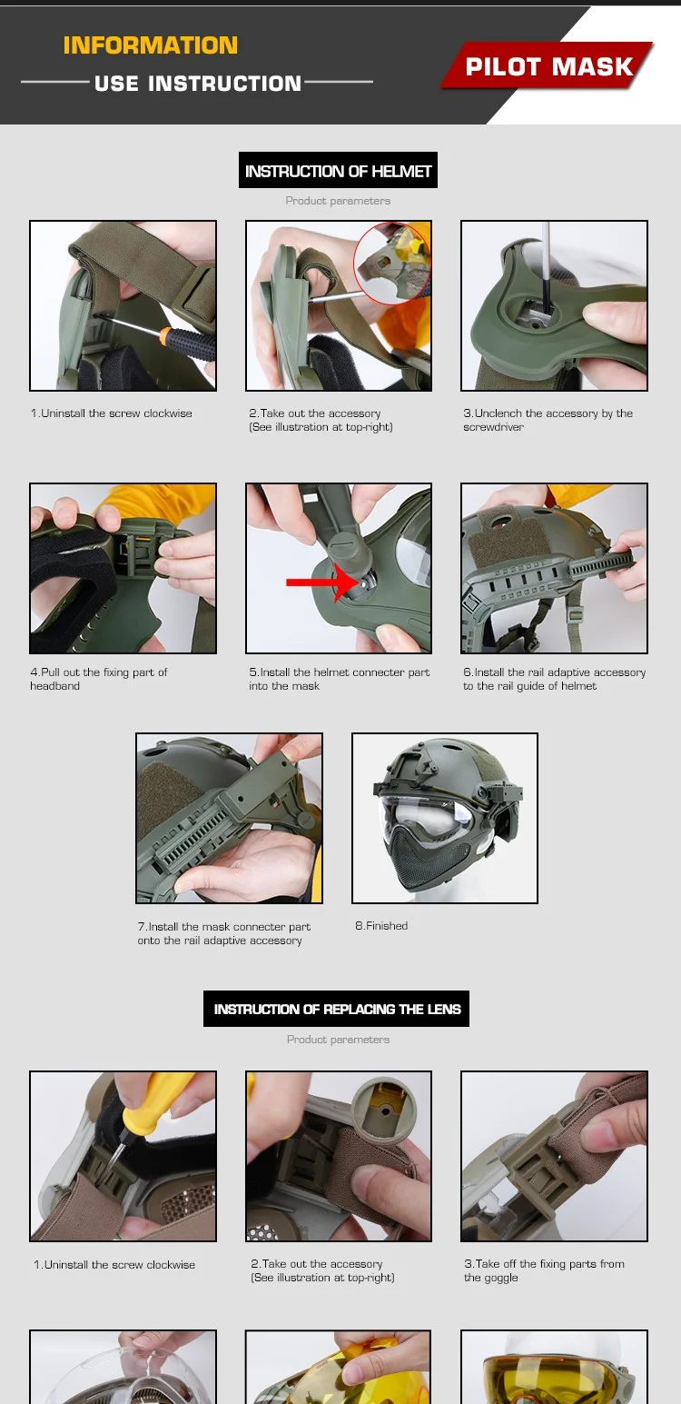 ●La máscara está hecha de máscara de TPU + lente de PC.Anti-UV, resistente al viento.
