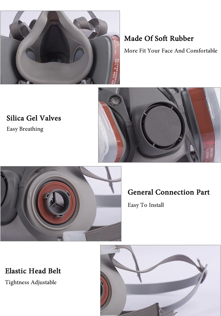 Caja filtrante: vapores orgánicos, benceno, queroseno, gasolina, acetona, tolueno, xileno, anilina, nitrobenceno y sus derivados, como cloropicrina, disulfuro de carbono y otros gases tóxicos.