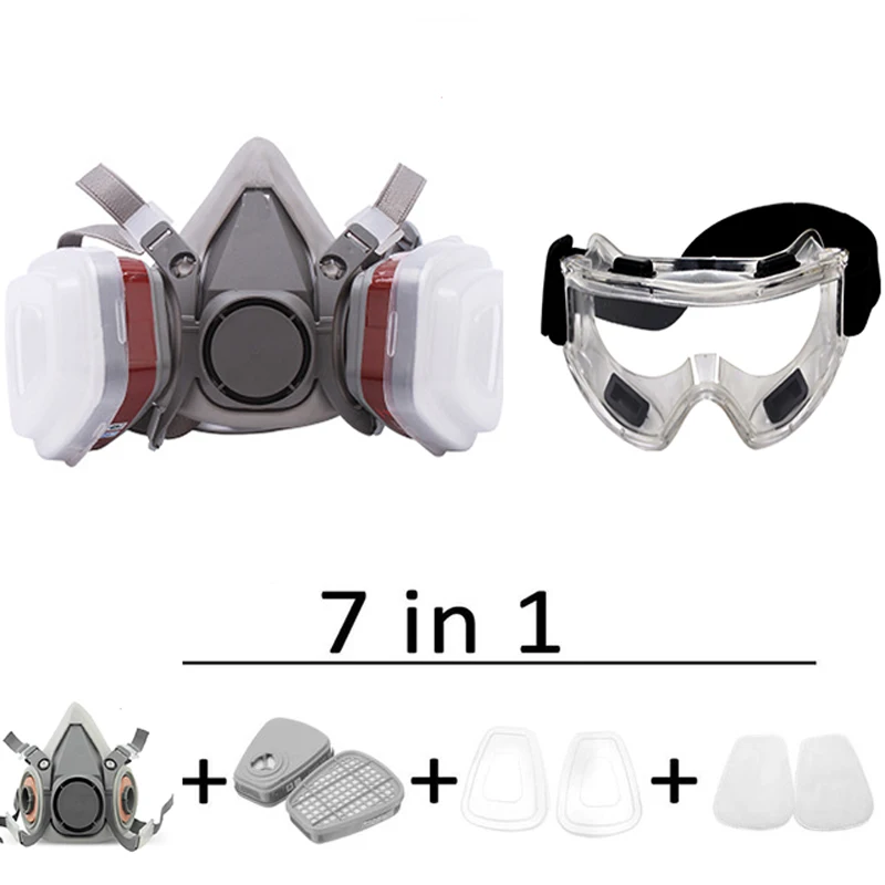 Mascarilla de Gas tipo 6200, respirador Industrial para pulverización de pintura de media cara con gafas protectoras, traje de seguridad, reemplazo de filtro de trabajo