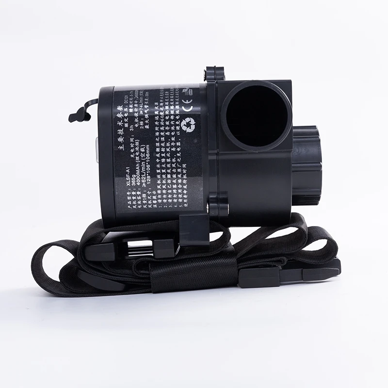-- Equipped with portable power source mainly overcome the problems of big air in-taking resistance, difficulties in breathing, etc.