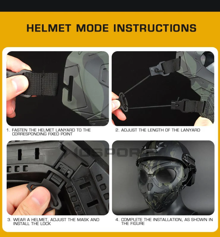 3. Use un casco. Ajuste la máscara e instale la cerradura