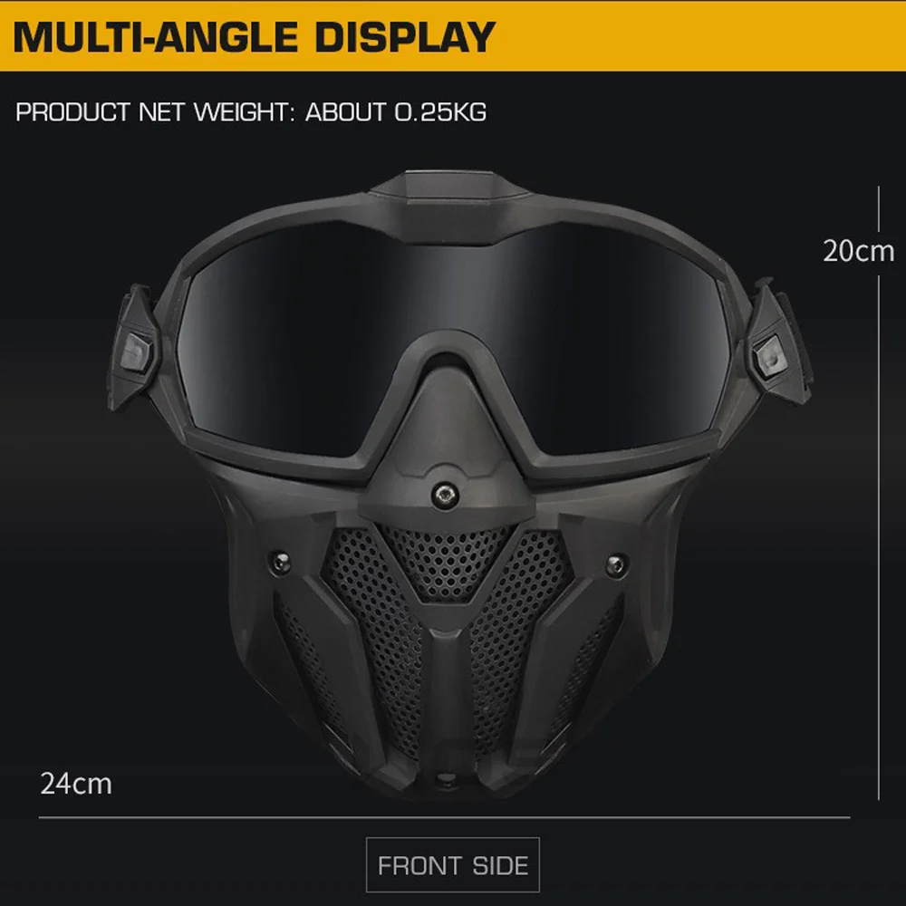 ③Diseño desmontable.La máscara táctica y las gafas se pueden separar.